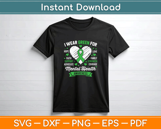Green Ribbon Mental Health Awareness Month Support SVG Digital Cutting File