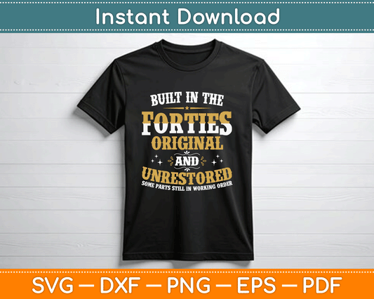 Built In The Forties Original Unrestored 70th Birthday Funny SVG Digital Cutting File