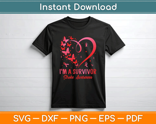 I’m A Survivor Stroke Awareness Red Butterfly Heart Stroke SVG Digital Cutting File