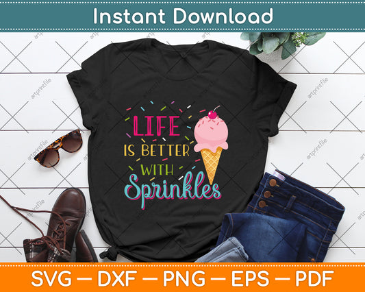 Life Is Better With Sprinkles Sweet Ice Cream Lover SVG Digital Cutting File