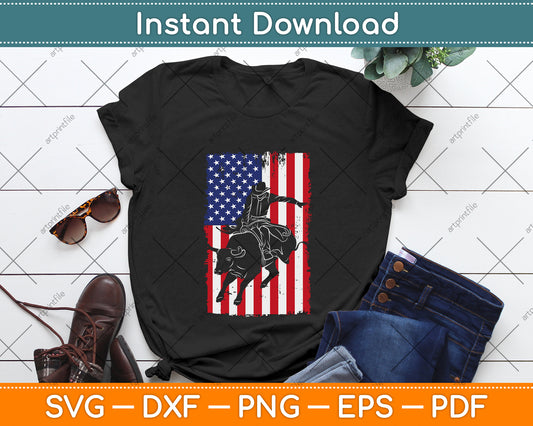 USA Flag Rodeo Lover Bull 4th of July Patriotic Cowboy SVG Digital Cutting File