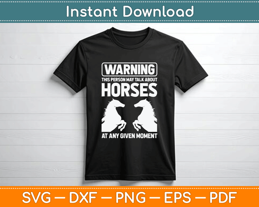 Warning May Talk About Horses Funny Riding SVG Digital Cutting File