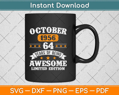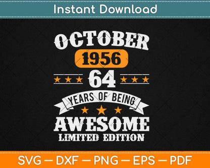 64 Years Old Gifts Vintage October 1956 64th Birthday Svg Design Cricut Cutting Files