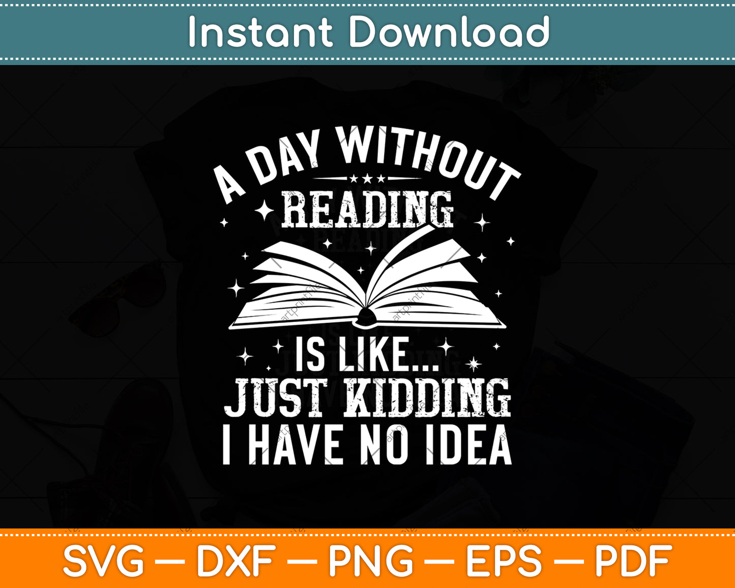 This cut file includes A Day Without Reading Is Like Just Kidding SVG DXF PNG Design Digital Cutting files.