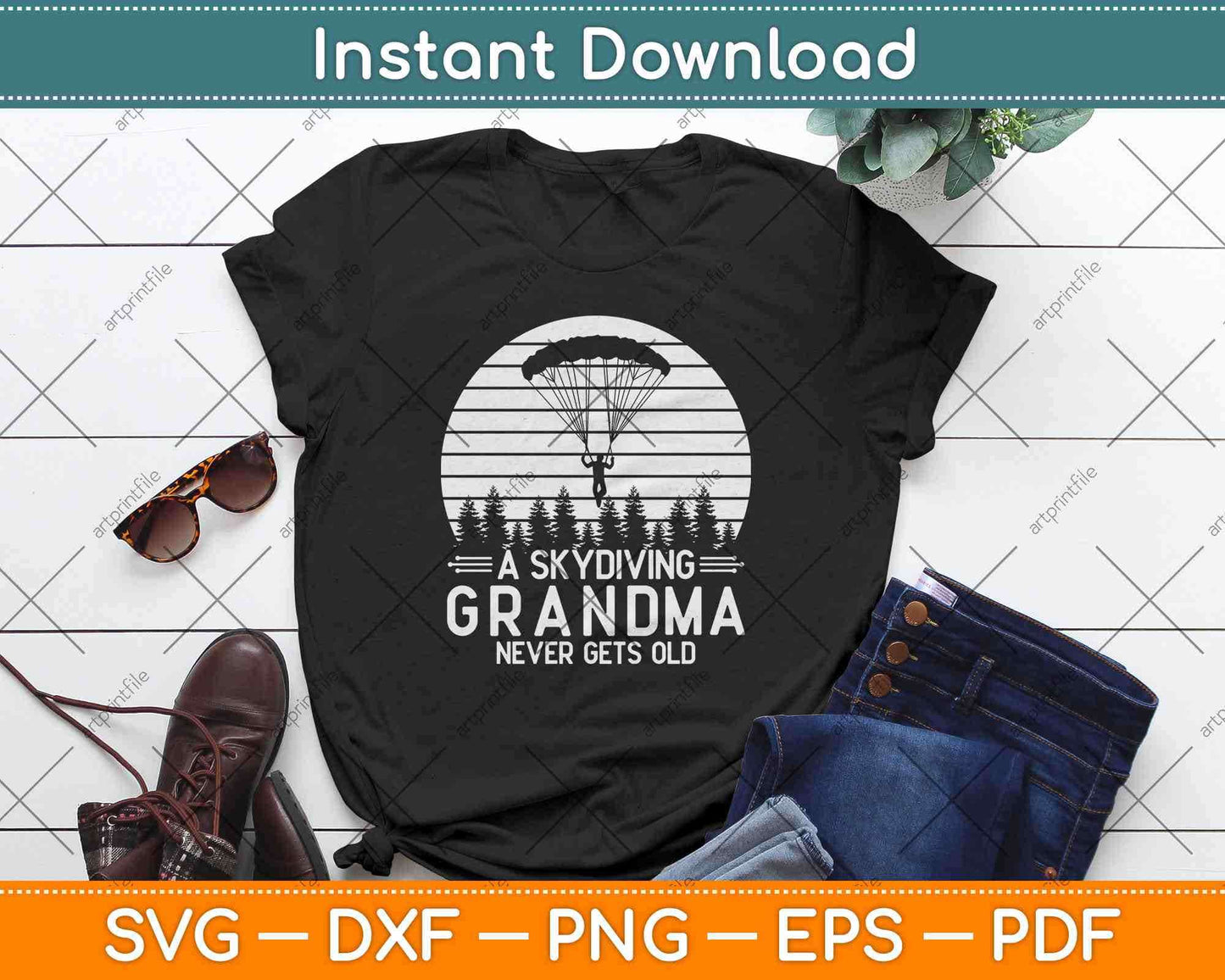 This cut file includes A Skydiving Grandpa Never Gets Old Funny SVG DXF PNG Design digital Cutting files.