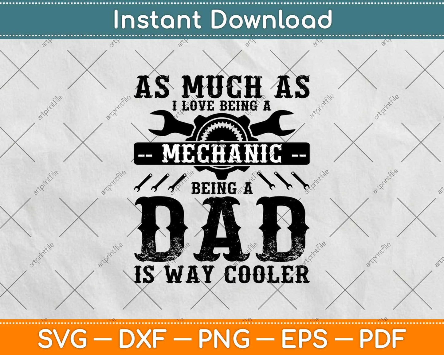 This cut file includes As Much As I Love Being A Mechanic Being A Dad Is Way Cooler SVG DXF PNG Design digital Cutting files.