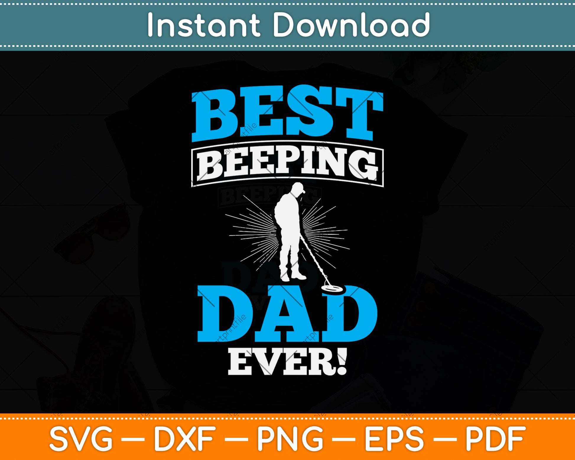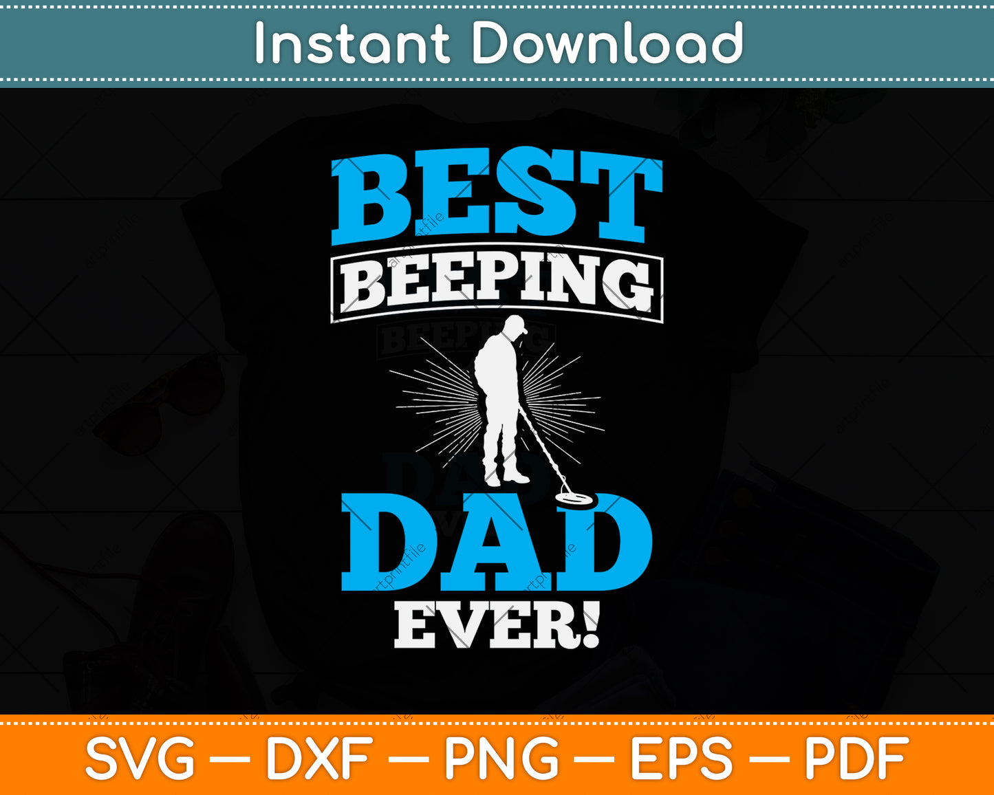 This cut file includes Best Beeping Dad Ever Father Metal Detecting SVG DXF PNG Design Digital Cutting files.
