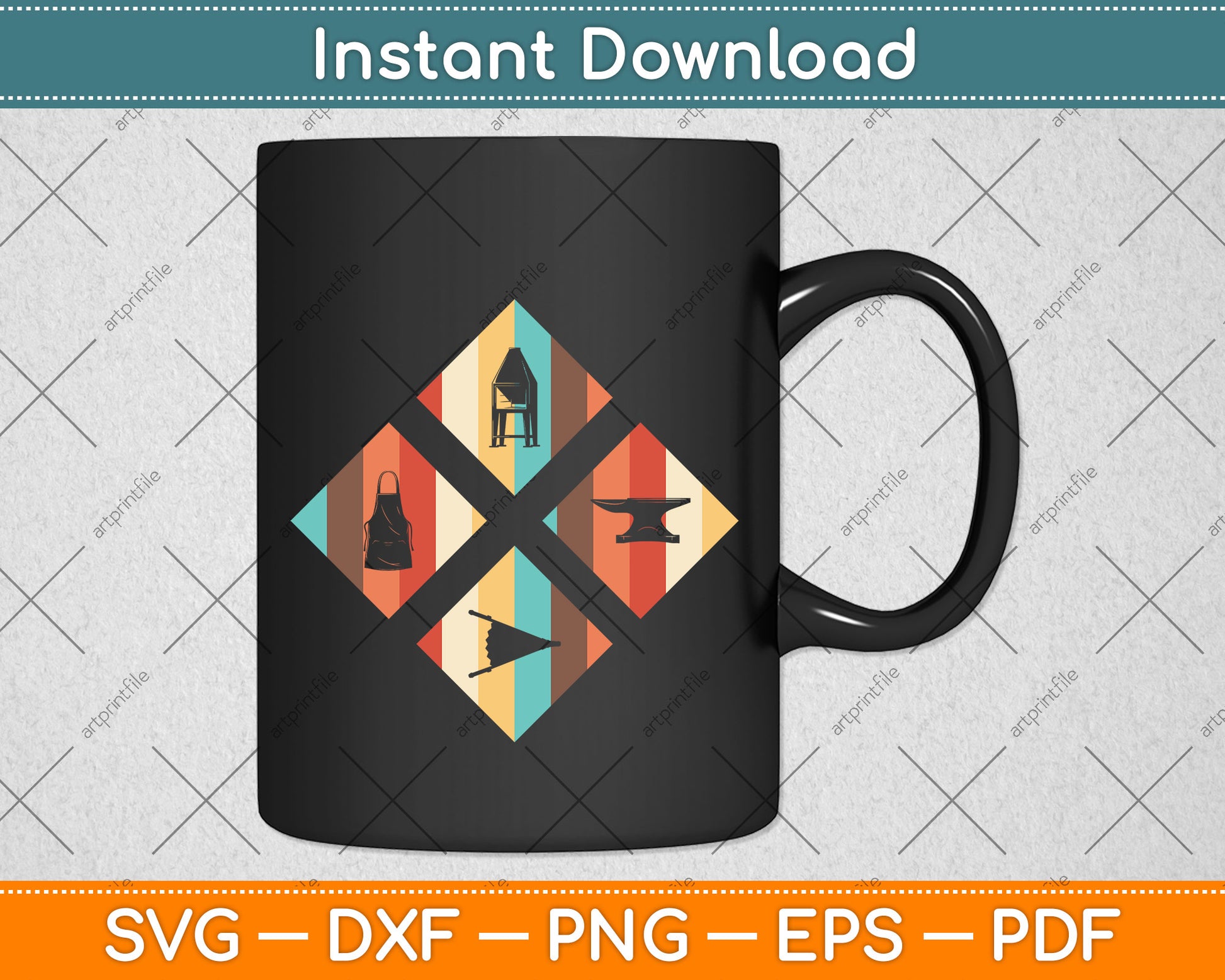 This cut file includes Blacksmith Tools Distressed Vintage Blacksmithing SVG DXF PNG Design Digital Cutting files.