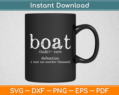 This cut file includes Boat Definition Bust Out Another Thousand Funny SVG DXF PNG Design Digital Cutting files.