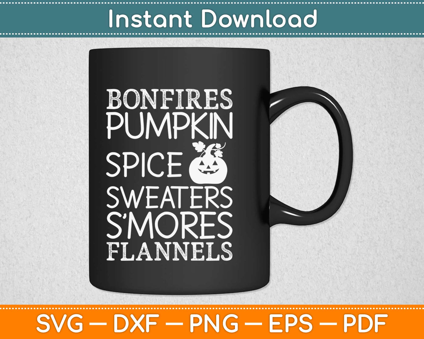 Bonfires Pumpkin Spice Sweaters S'mores Flannels Svg Design Cricut Cutting Files