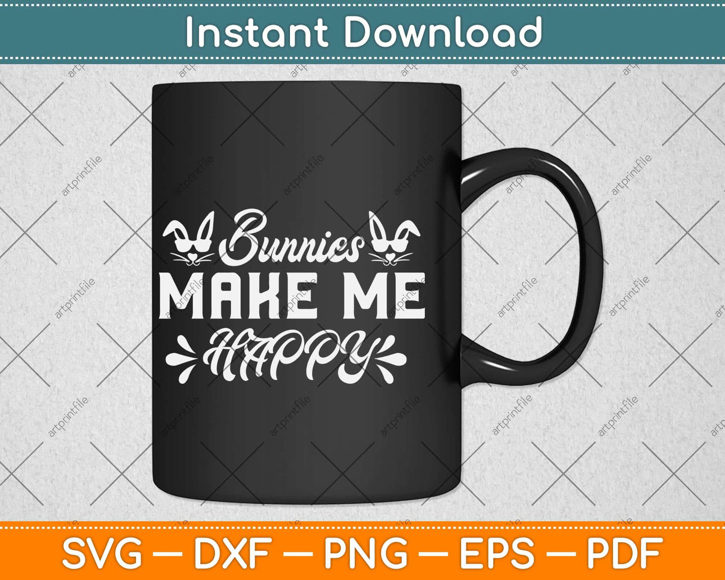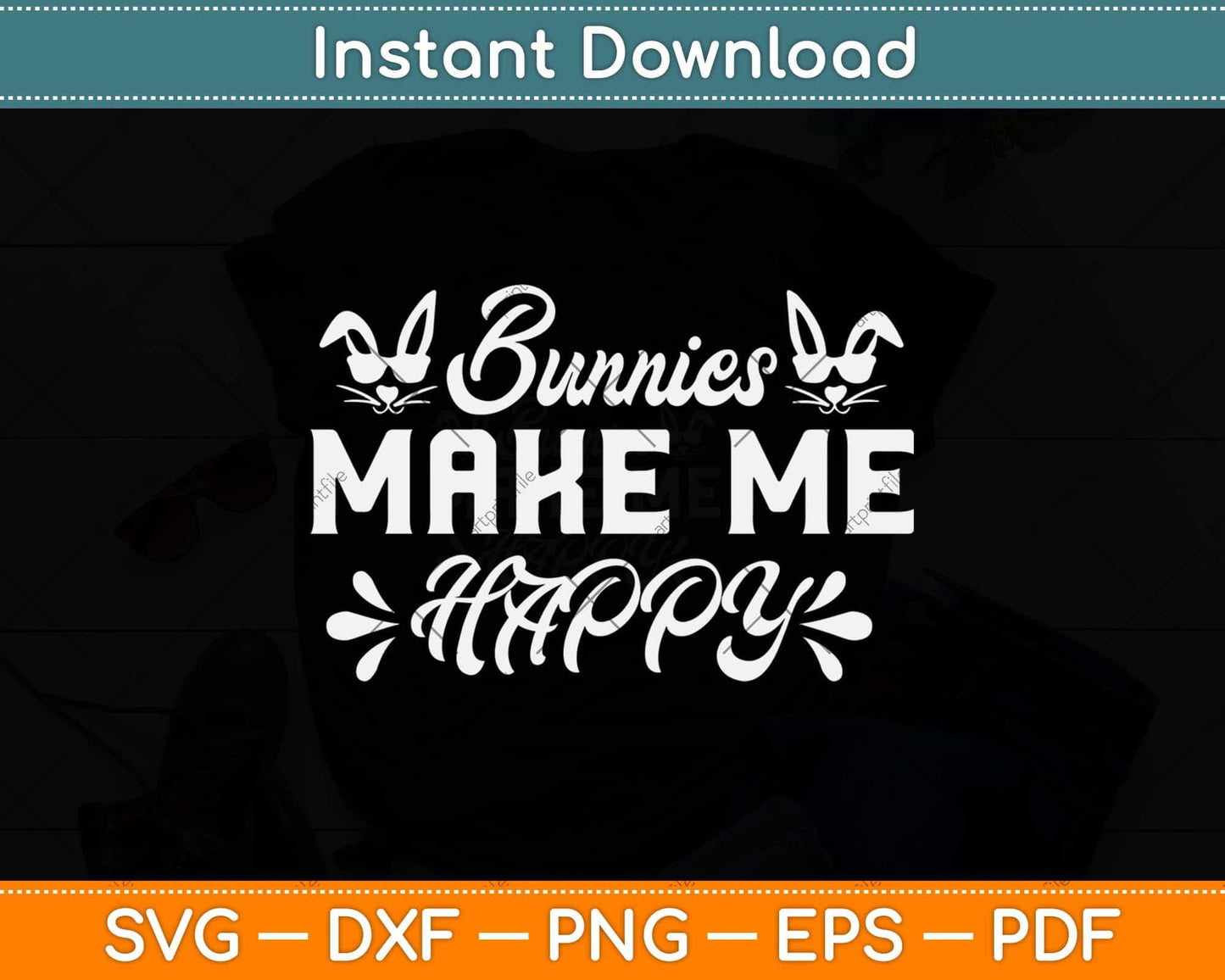 This cut file includes Bunnies Make Me Happy Toddler Girl Kid Mom Cute Easter Bunny SVG DXF PNG Design digital Cutting files.