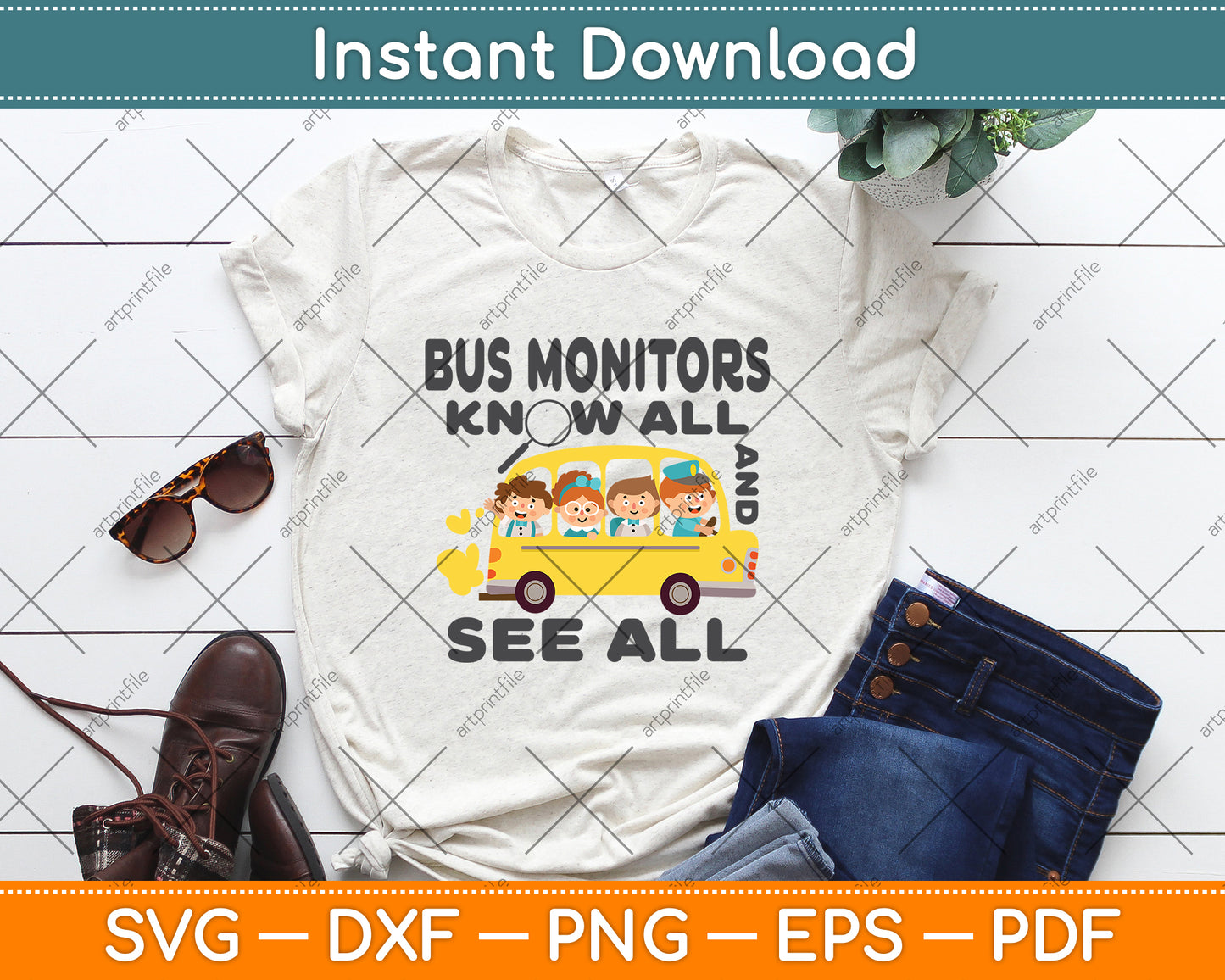 This cut file includes Bus Monitors Know All And See All - School Bus Funny SVG DXF PNG Design Digital Cutting files.