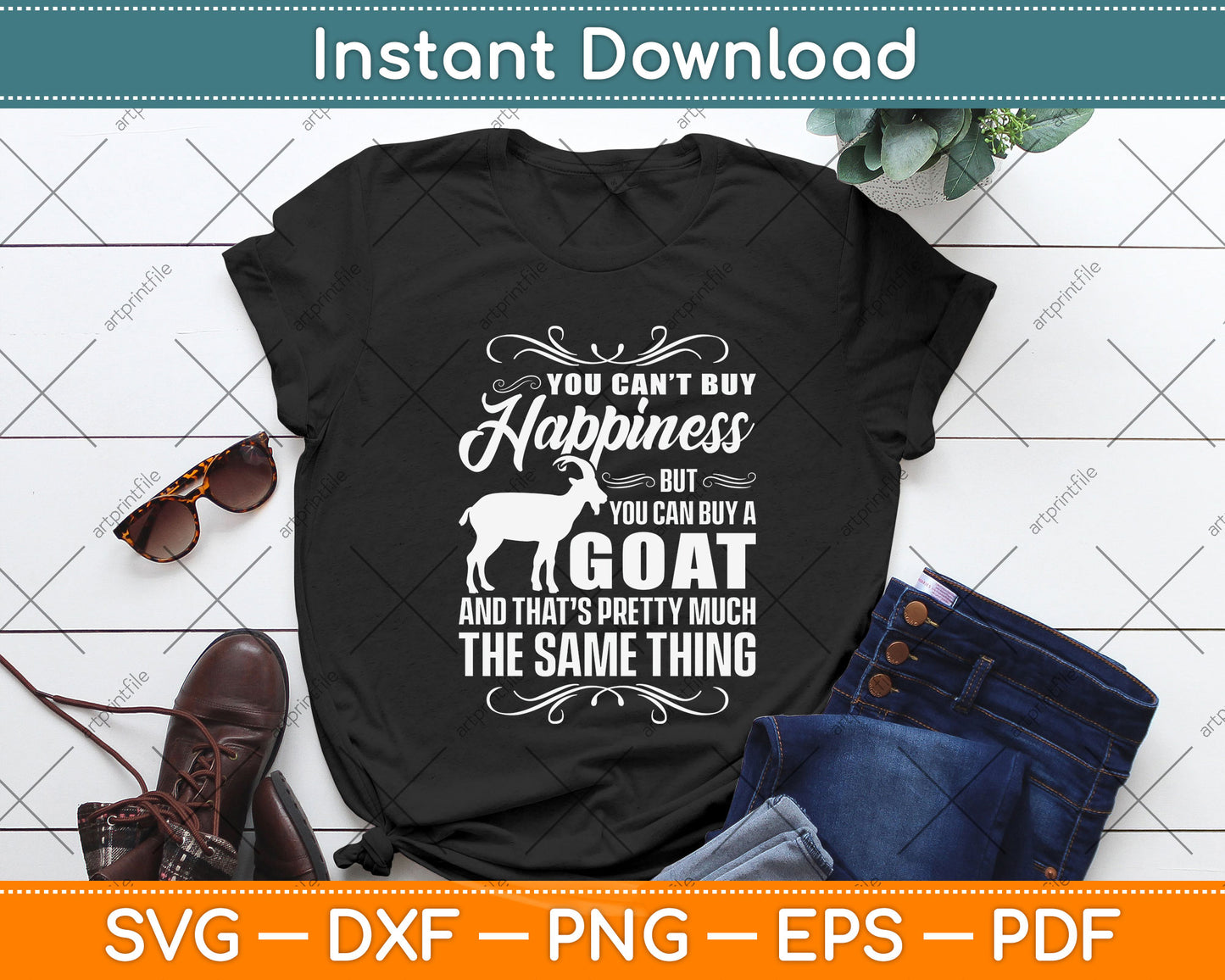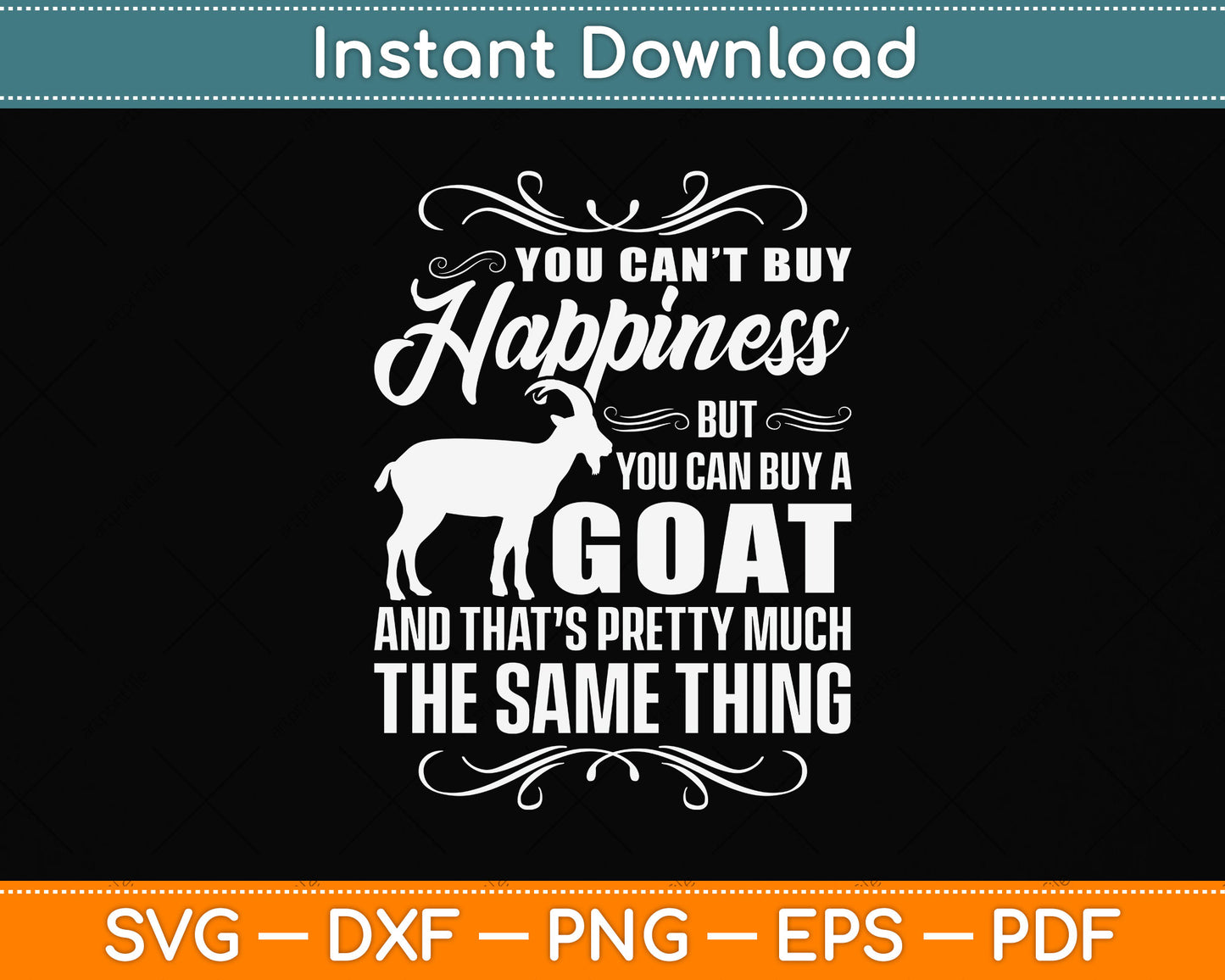 This cut file includes Buy A Goat For Happiness Funny Goat SVG DXF PNG Design Digital Cutting files.
