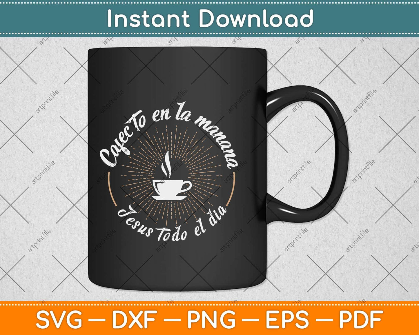 This cut file includes Cafecito Y Jesus Gift Reagalo Cristiano Christian Spanish SVG DXF PNG Design digital Cutting files.