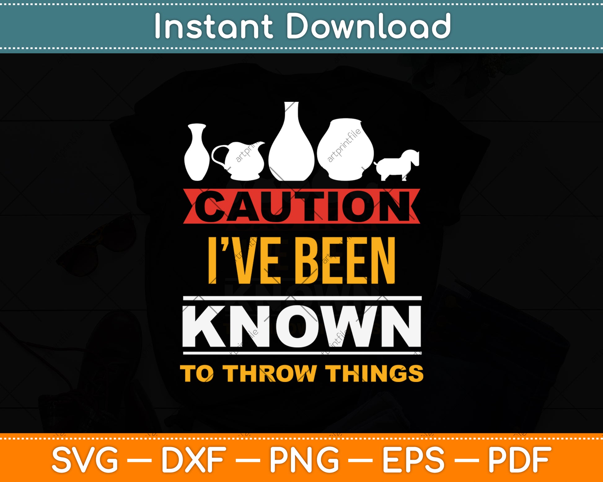 This cut file includes Caution I’ve Been Known To Throw Things SVG DXF PNG Design Digital Cutting files.