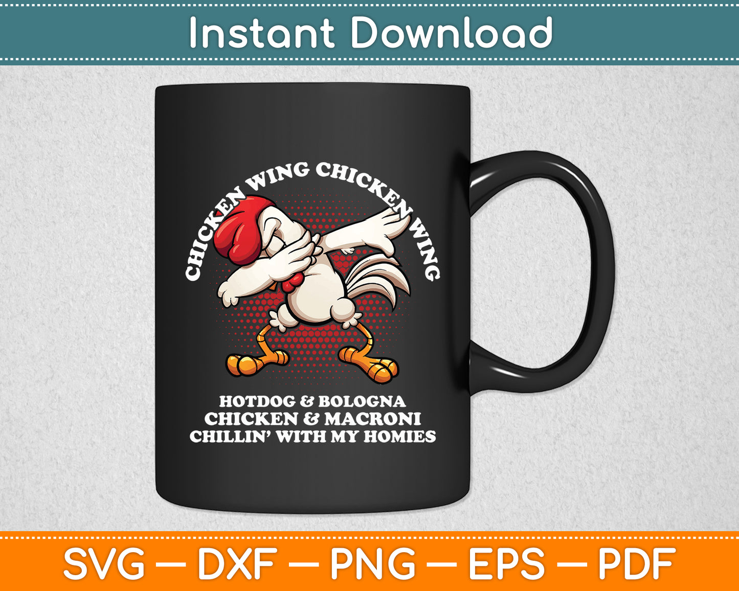 This cut file includes Chicken Wing Chicken Wing Song Lyric Hot Dog Bologna SVG DXF PNG Design Digital Cutting files.