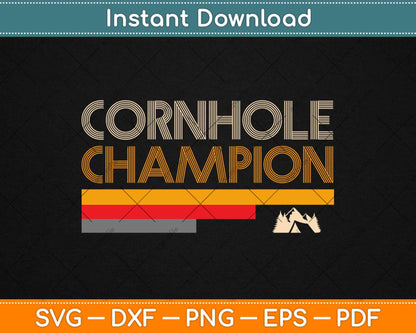 This cut file includes Funny Vintage Retro Style Cornhole Champion SVG DXF PNG Design digital Cutting files.
