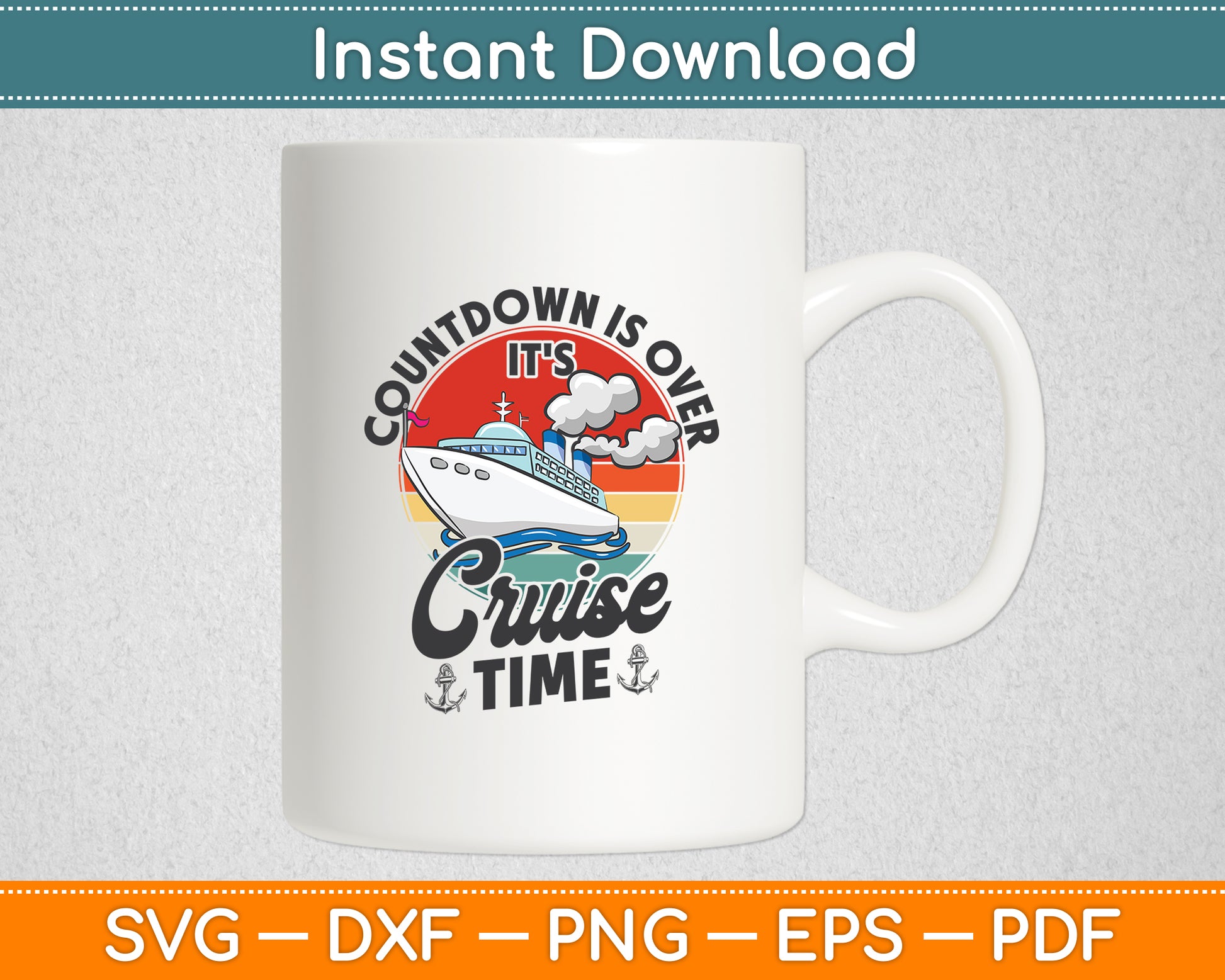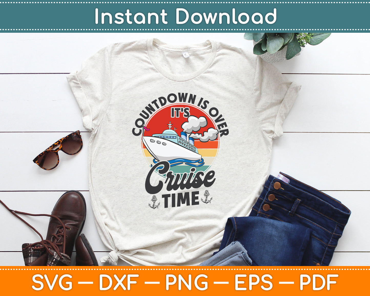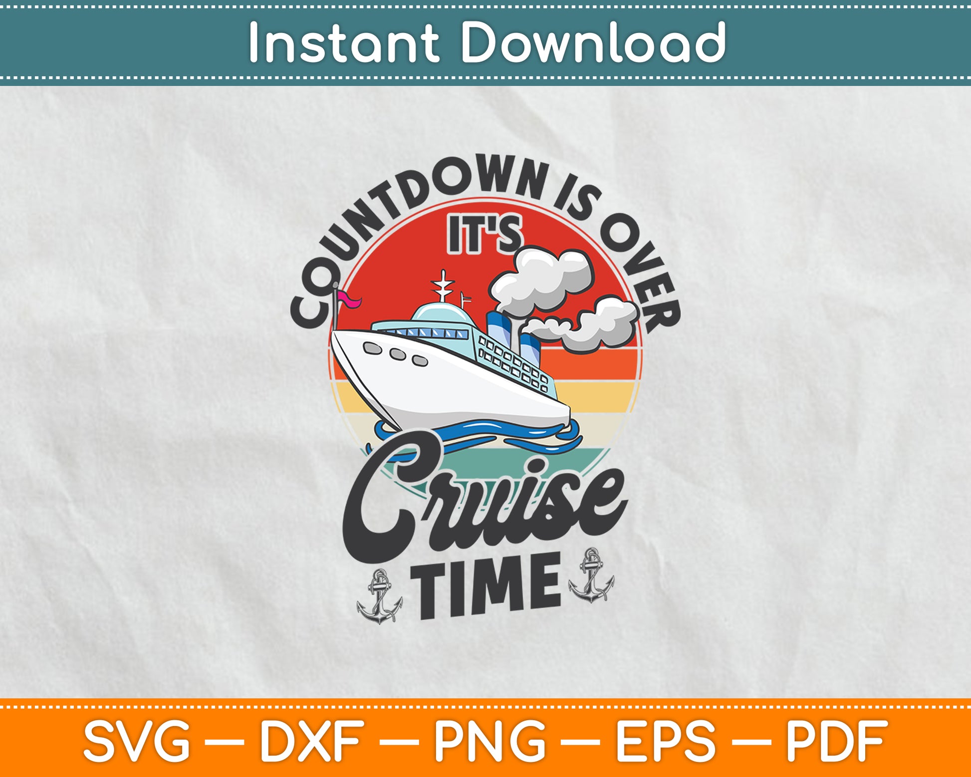This cut file includes Countdown Is Over It's Cruise Time Vintage Retro SVG DXF PNG Design Digital Cutting files.