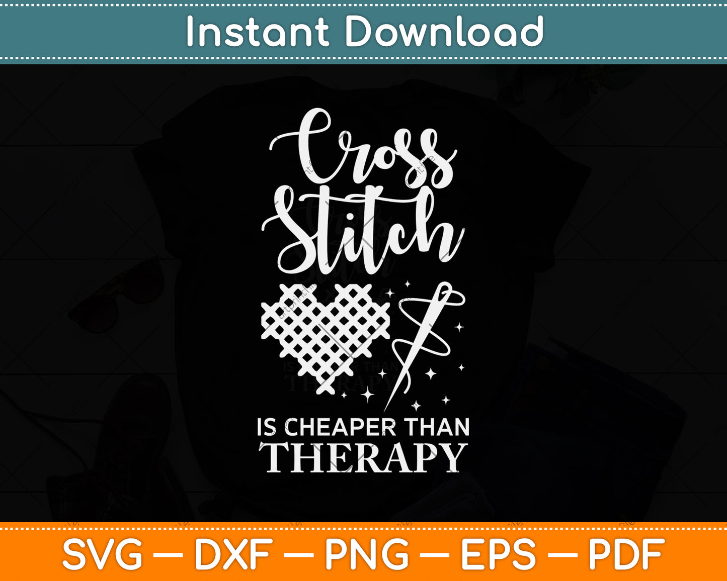 Cross Stitch Is Cheaper Than Therapy Svg Png Dxf Digital Cutting File