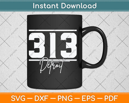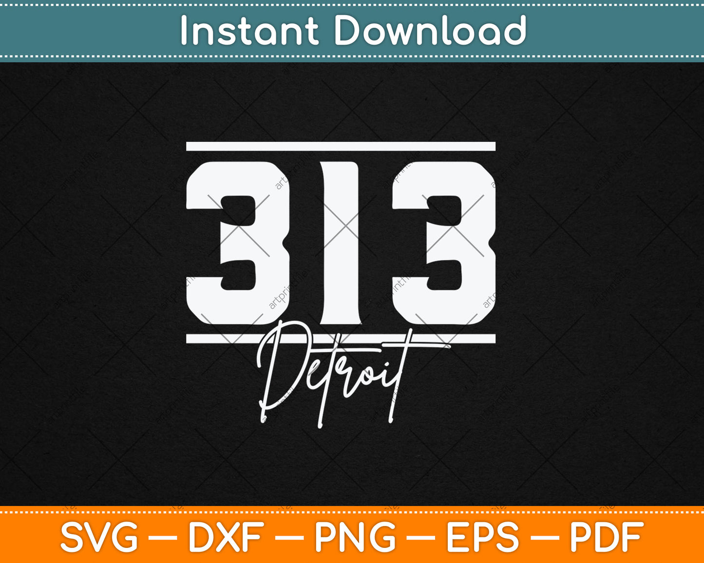 This cut file includes Detroit 313 Area Code Skyline Michigan Vintage SVG DXF PNG Design Digital Cutting files.