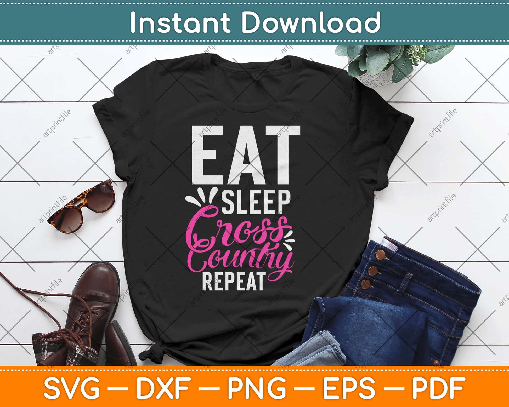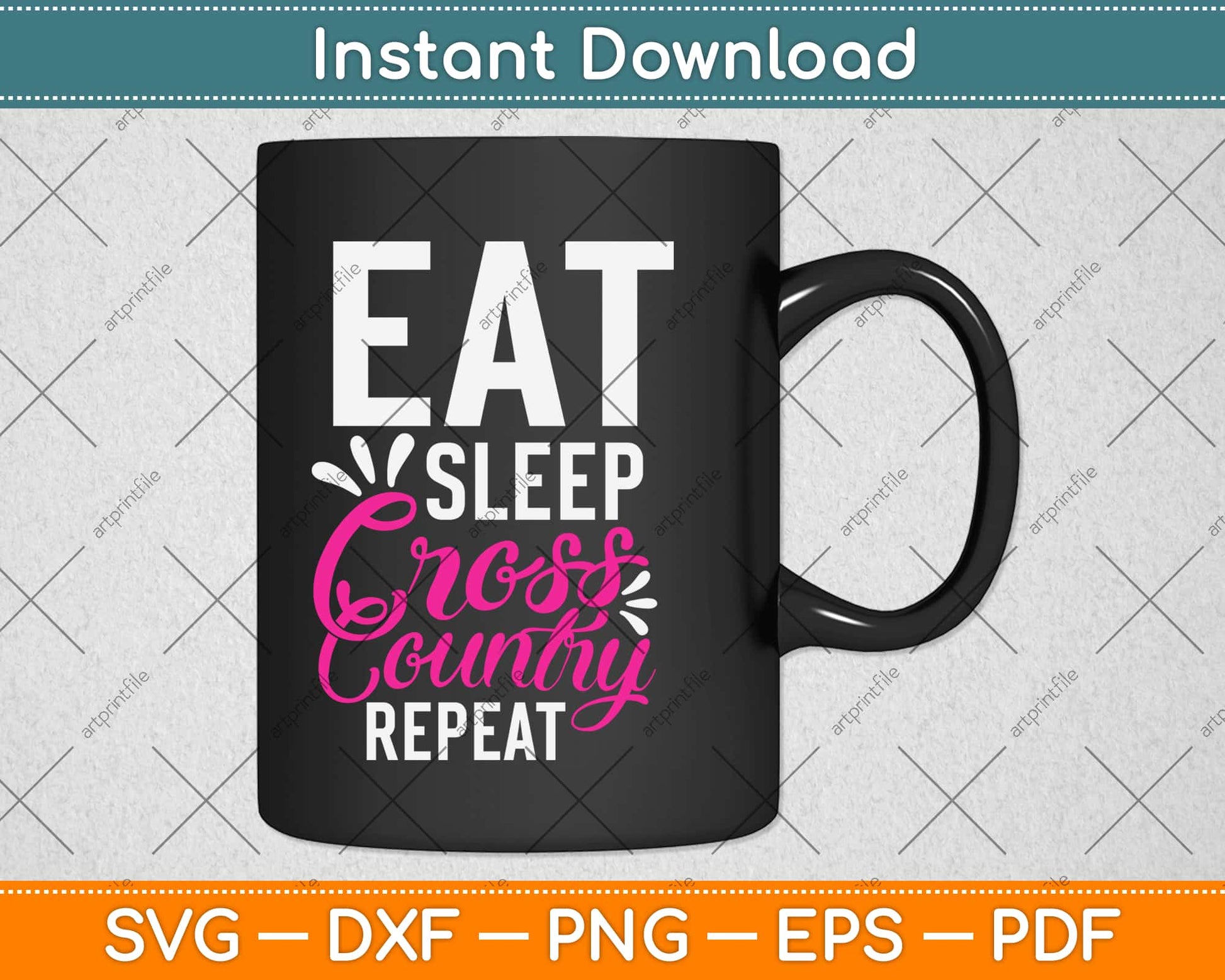 Eat Sleep Cross Country Repeat Motivational Svg Design Cricut Printable Cutting Files