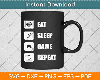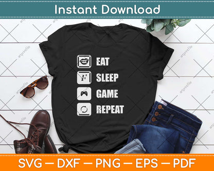 This cut file includes Eat Sleep Game Repeat SVG DXF PNG Design digital Cutting files.