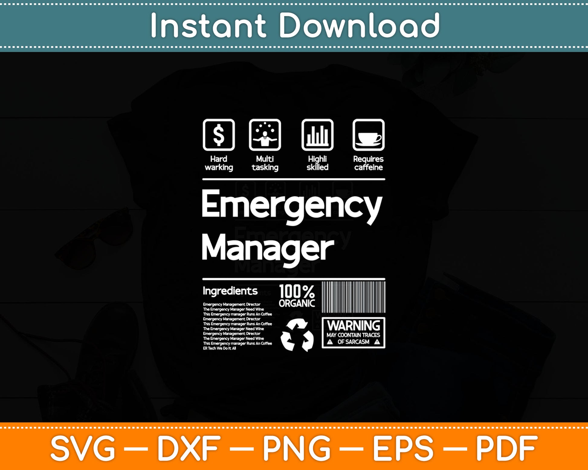 This cut file includes Emergency Manager Funny SVG DXF PNG Design Digital Cutting files.