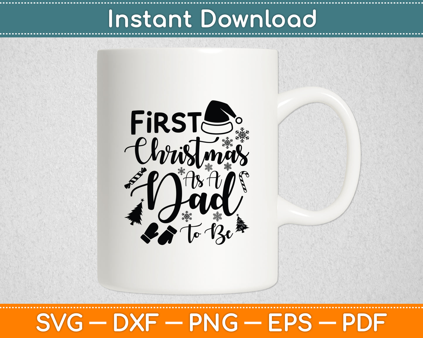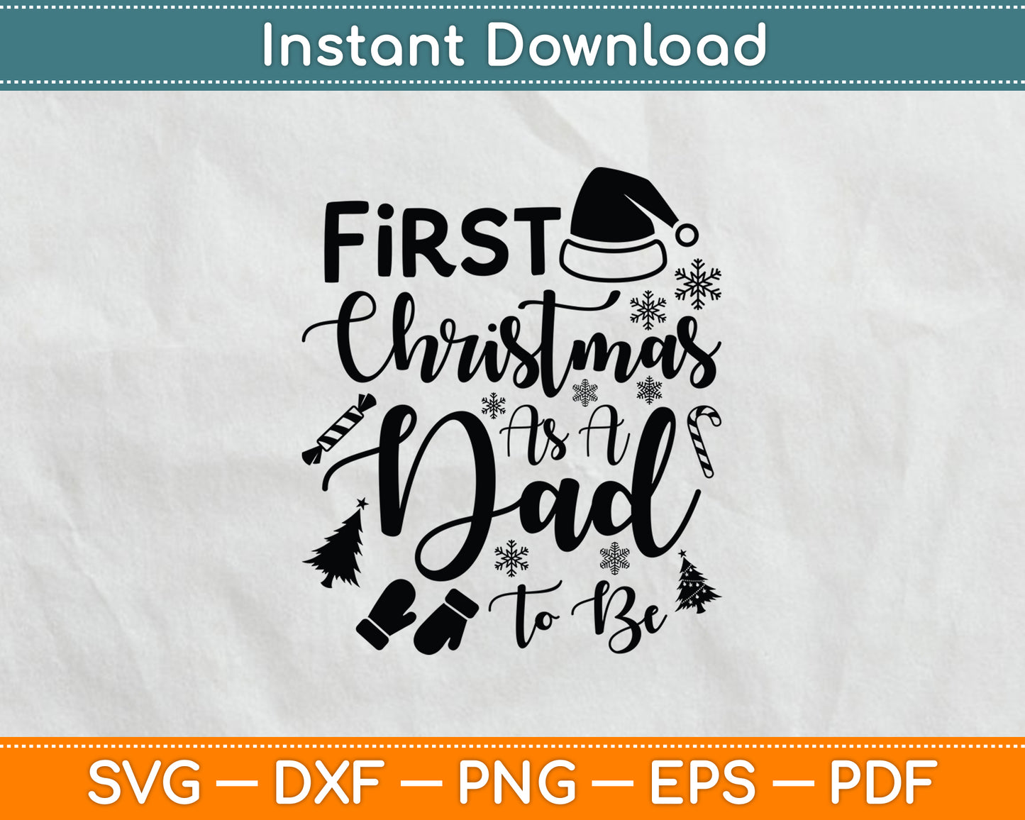 This cut file includes First Christmas As A Dad To Be Future Daddy Xmas New Dad SVG DXF PNG Design Digital Cutting files.