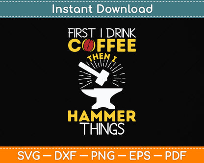 First I Drink Coffee Then I Hammer Things Svg Png Dxf Digital Cutting File