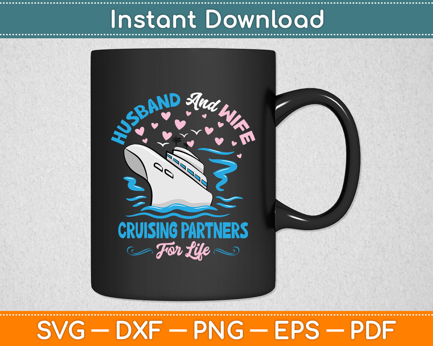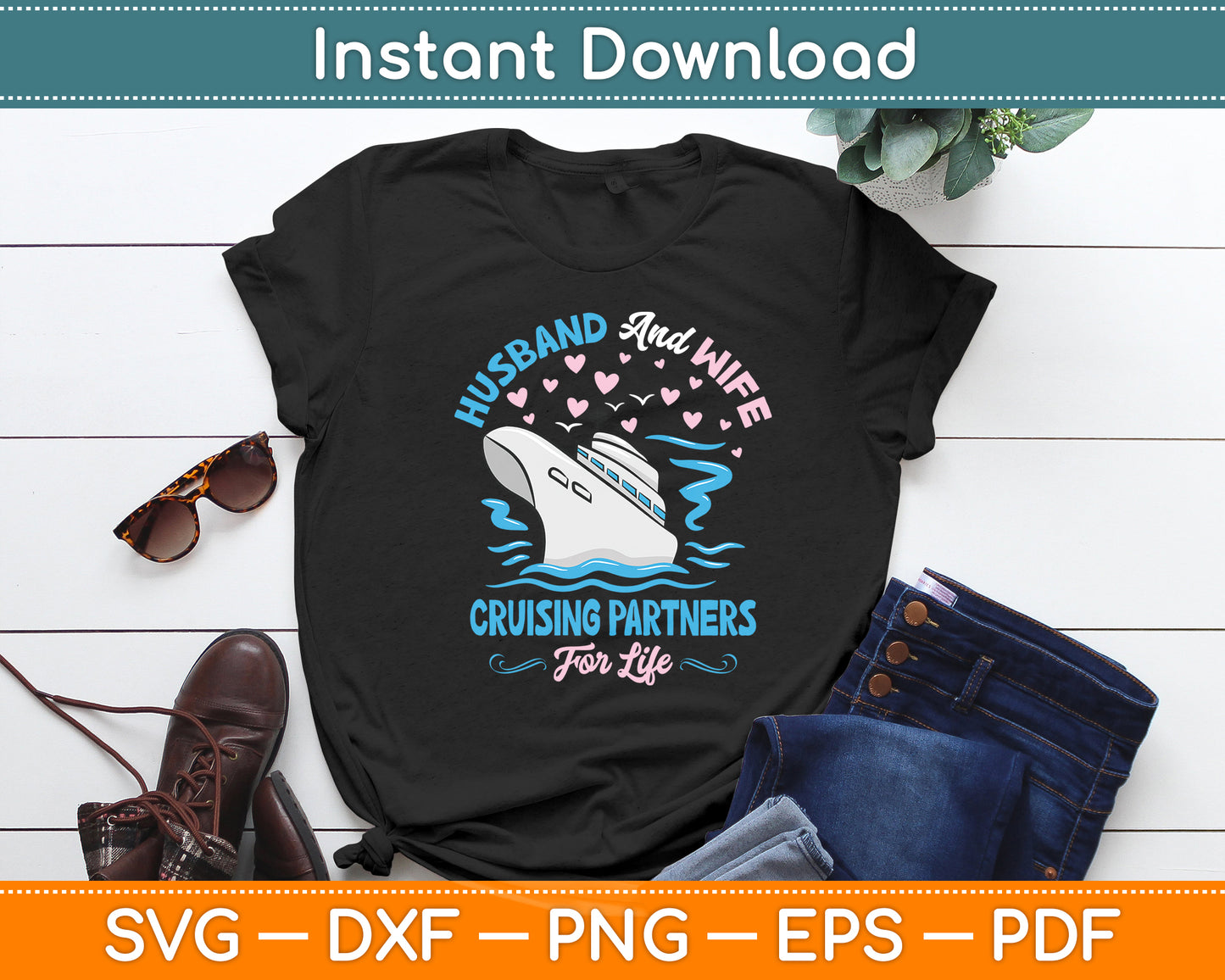 This cut file includes Husband And Wife Cruising Partners for Life SVG DXF PNG Design Digital Cutting files.