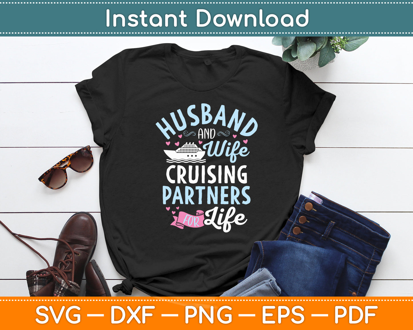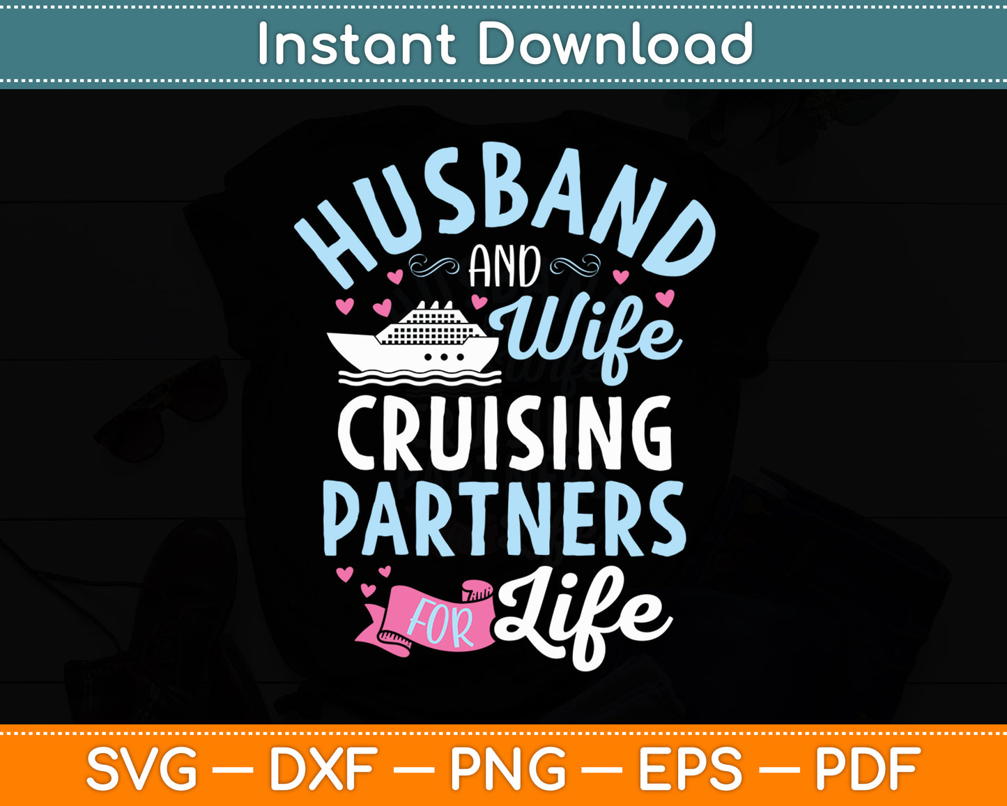 This cut file includes Husband And Wife Cruising Partners for Life SVG DXF PNG Design Digital Cutting files.