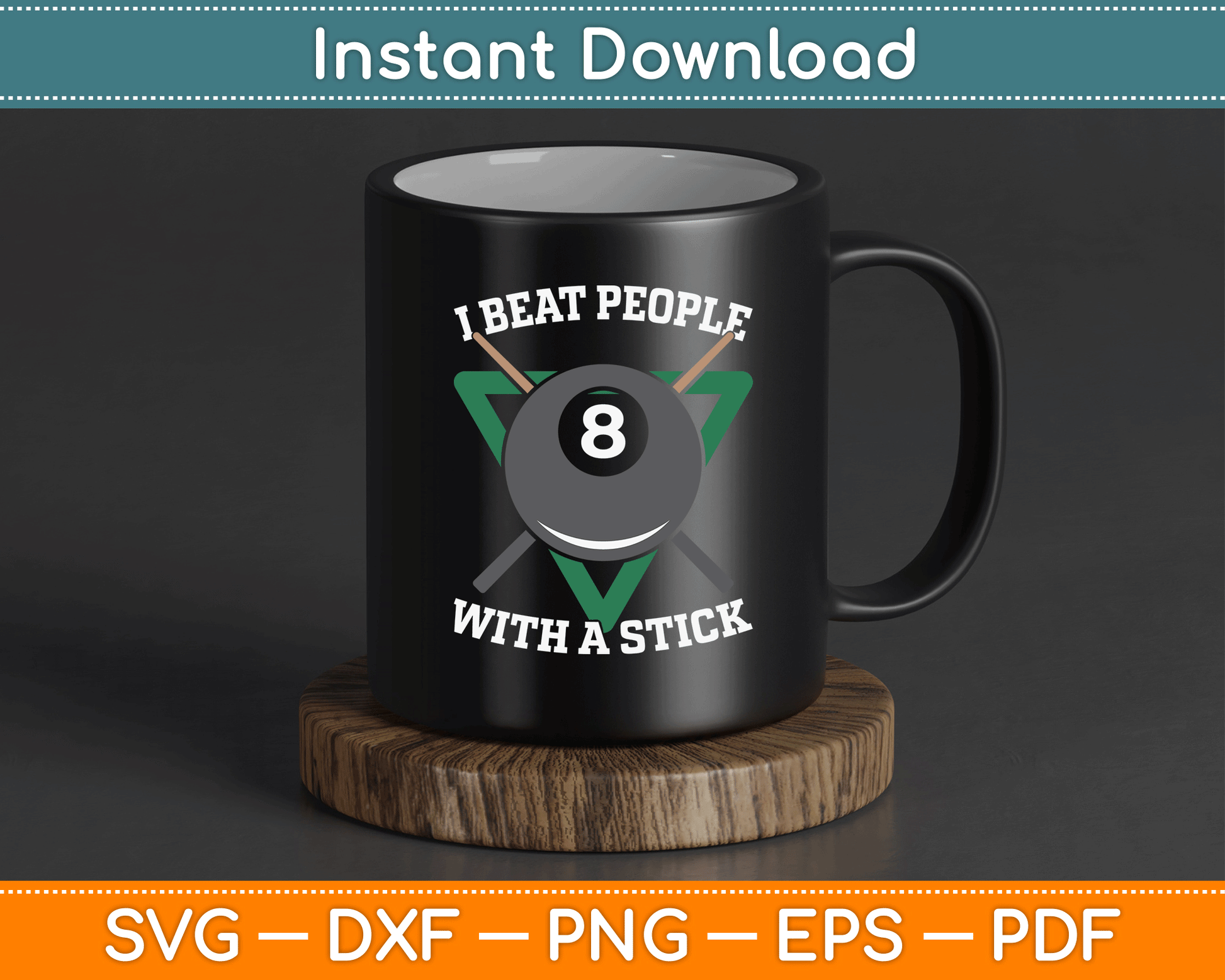 This cut file includes I Beat People With A Stick Billiards Ball Pool SVG DXF PNG Design Digital Cutting files.