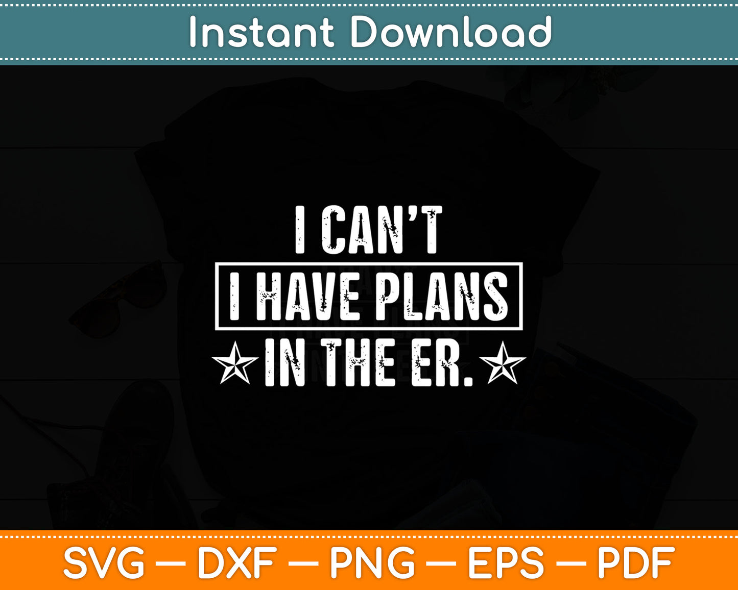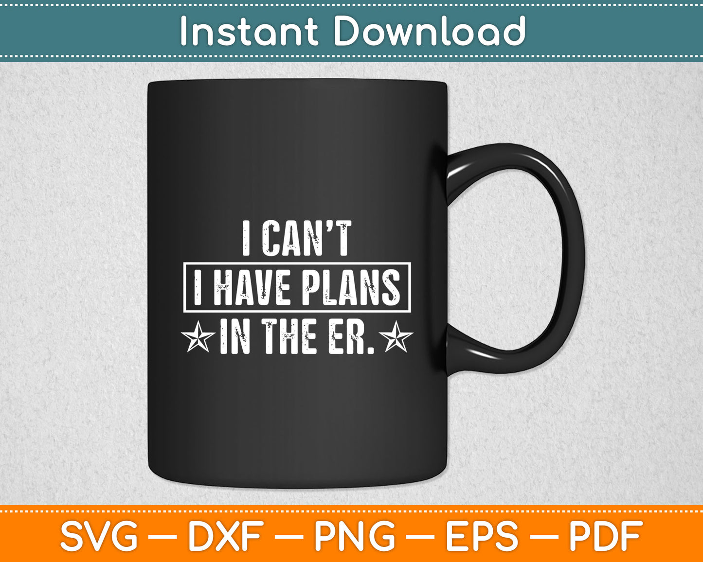 This cut file includes I Can't I Have Plans in the ER Funny Emergency Nurse SVG DXF PNG Design Digital Cutting files.