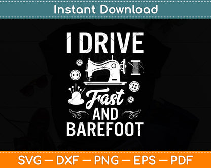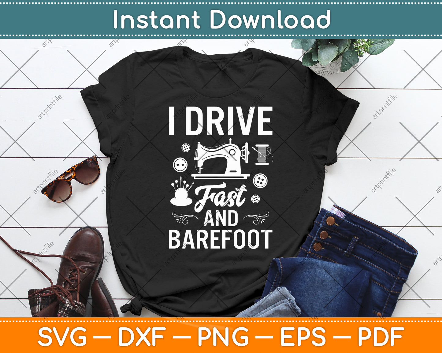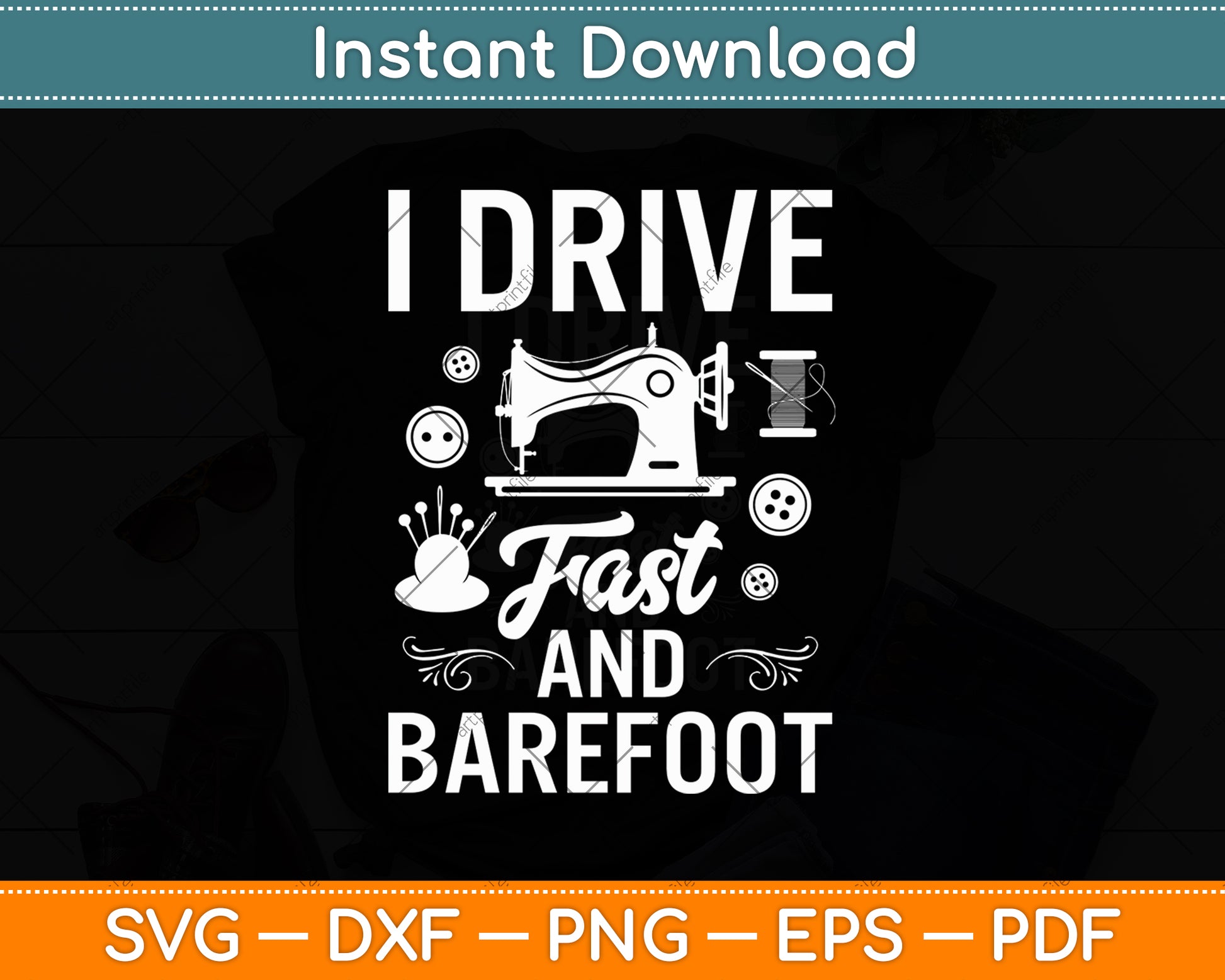 This cut file includes I Drive Fast & Barefoot Funny SVG DXF PNG Design Digital Cutting files.