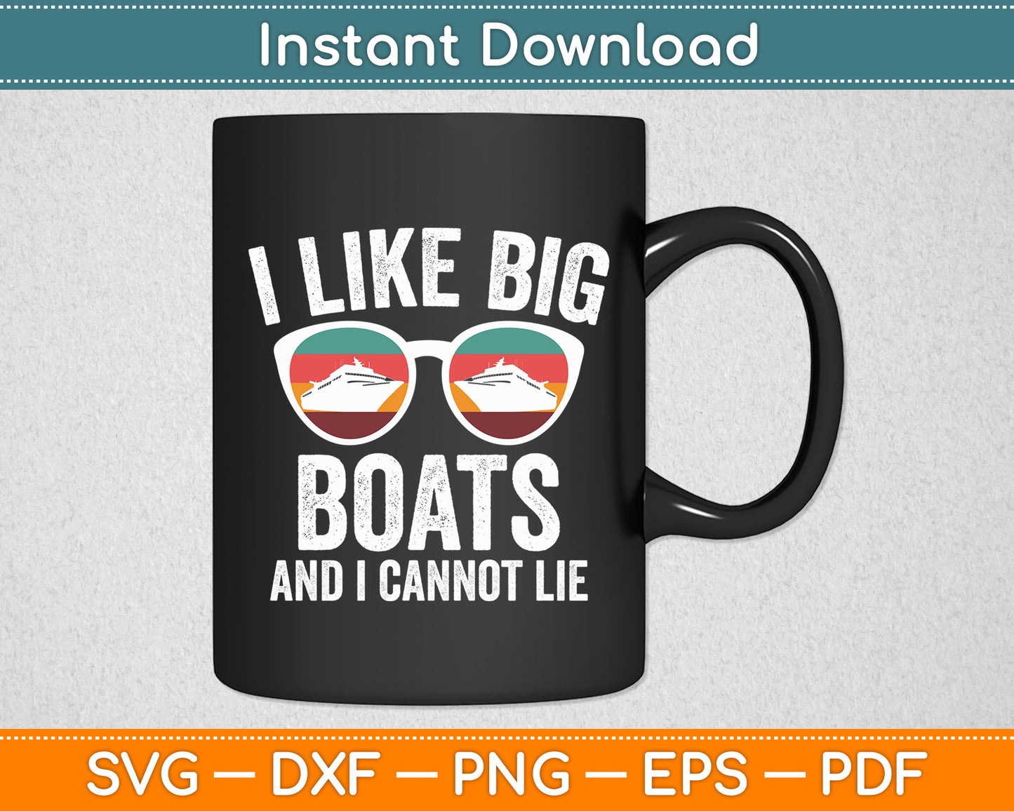 This cut file includes I Like Big Boats And I Cannot Lie Yacht Boating Funny SVG DXF PNG Design Digital Cutting files.