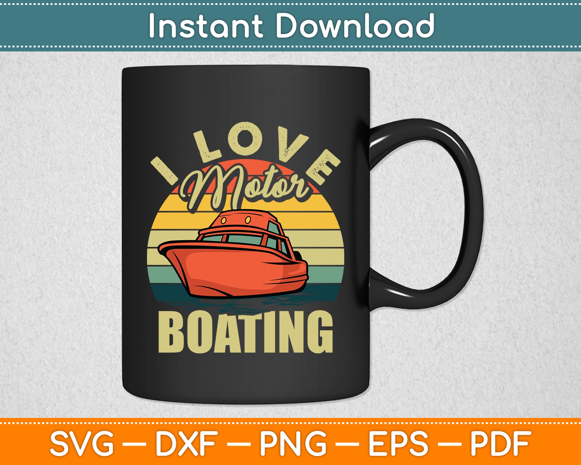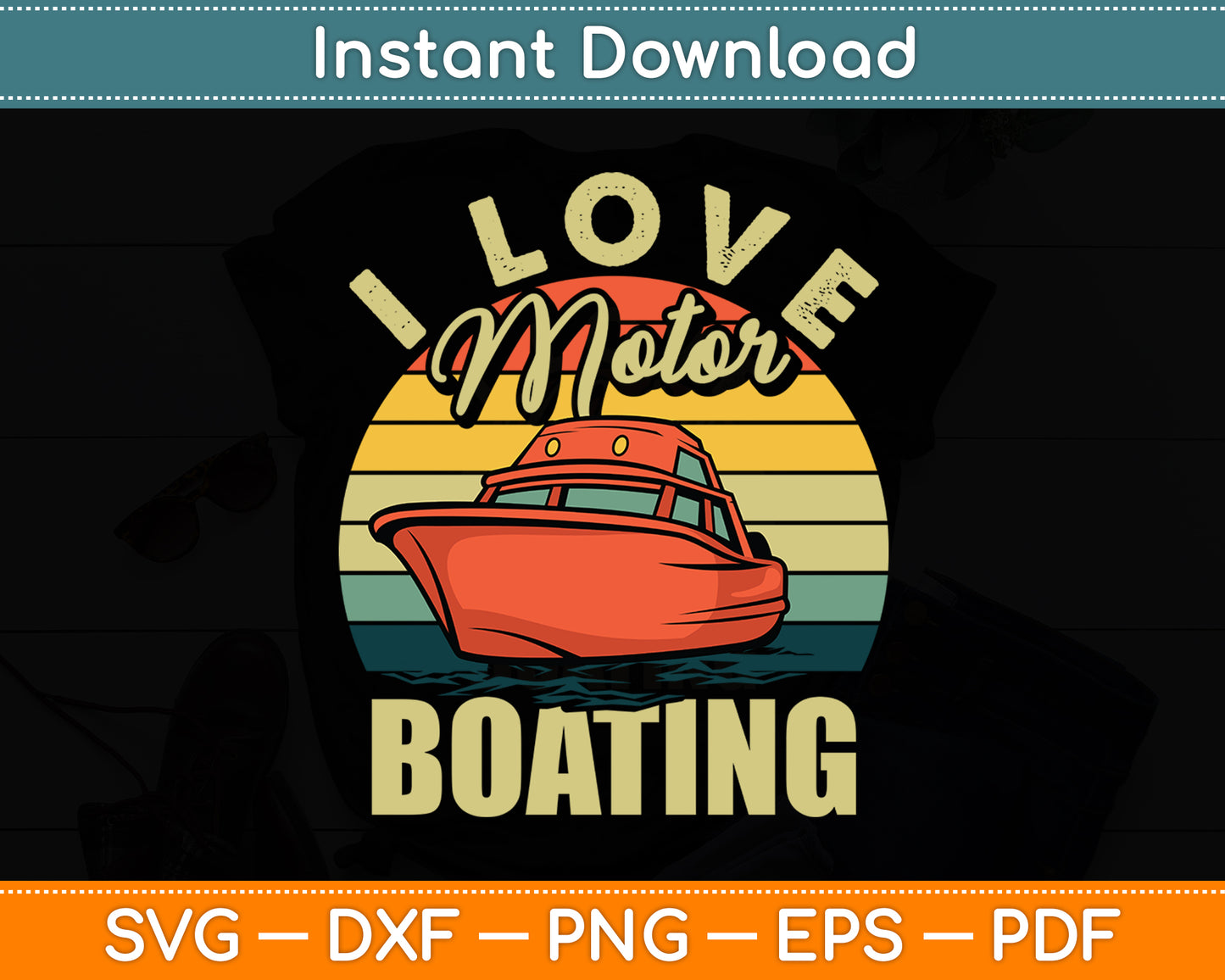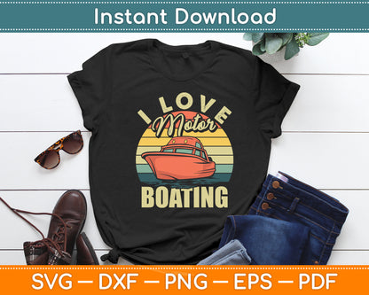 This cut file includes I Love Motor Boating Vintage Retro Boater Funny SVG DXF PNG Design Digital Cutting files.