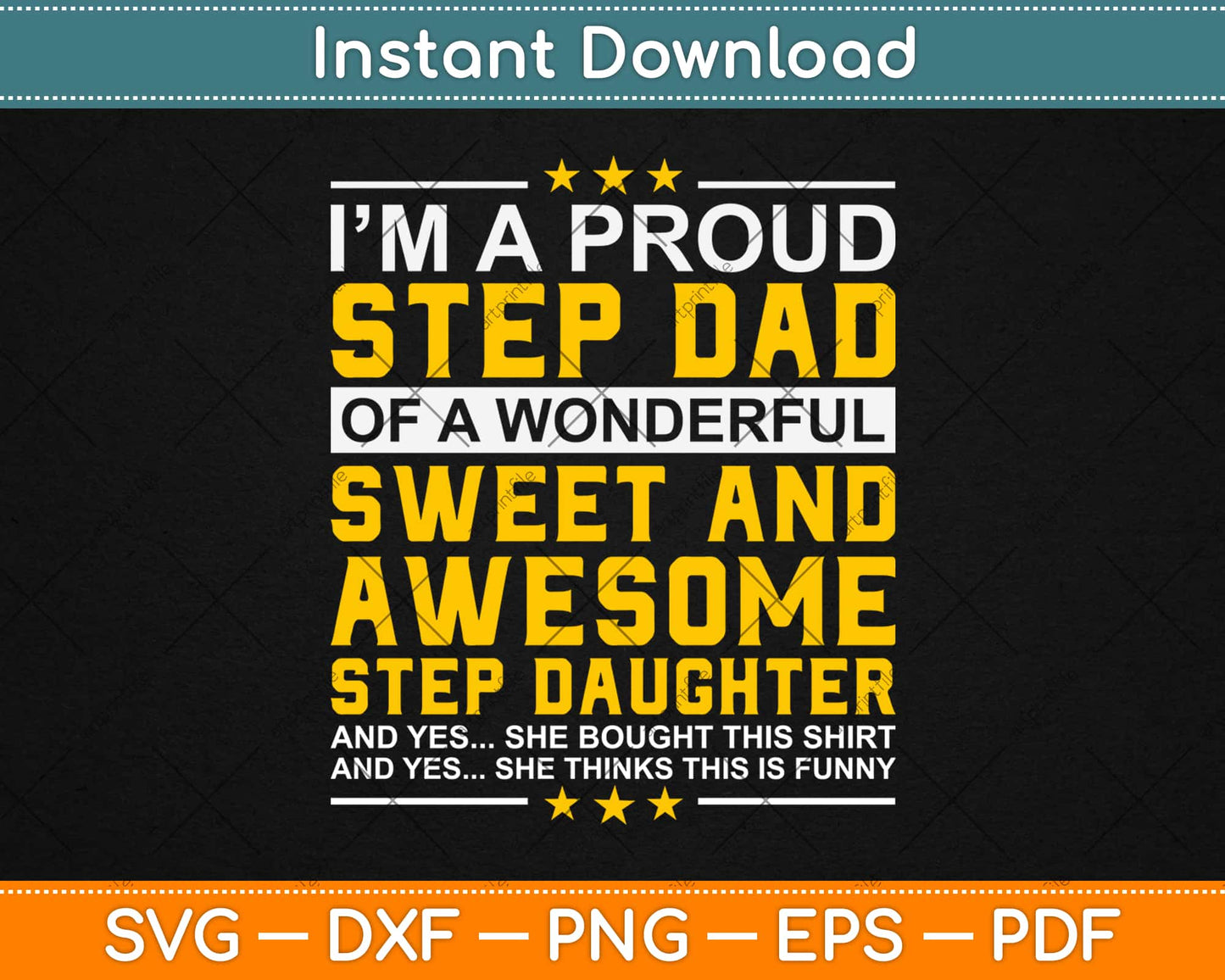 This cut file includes I’m A Proud Step Dad Of A Wonderful Sweet And Awesome SVG DXF PNG Design digital Cutting files.