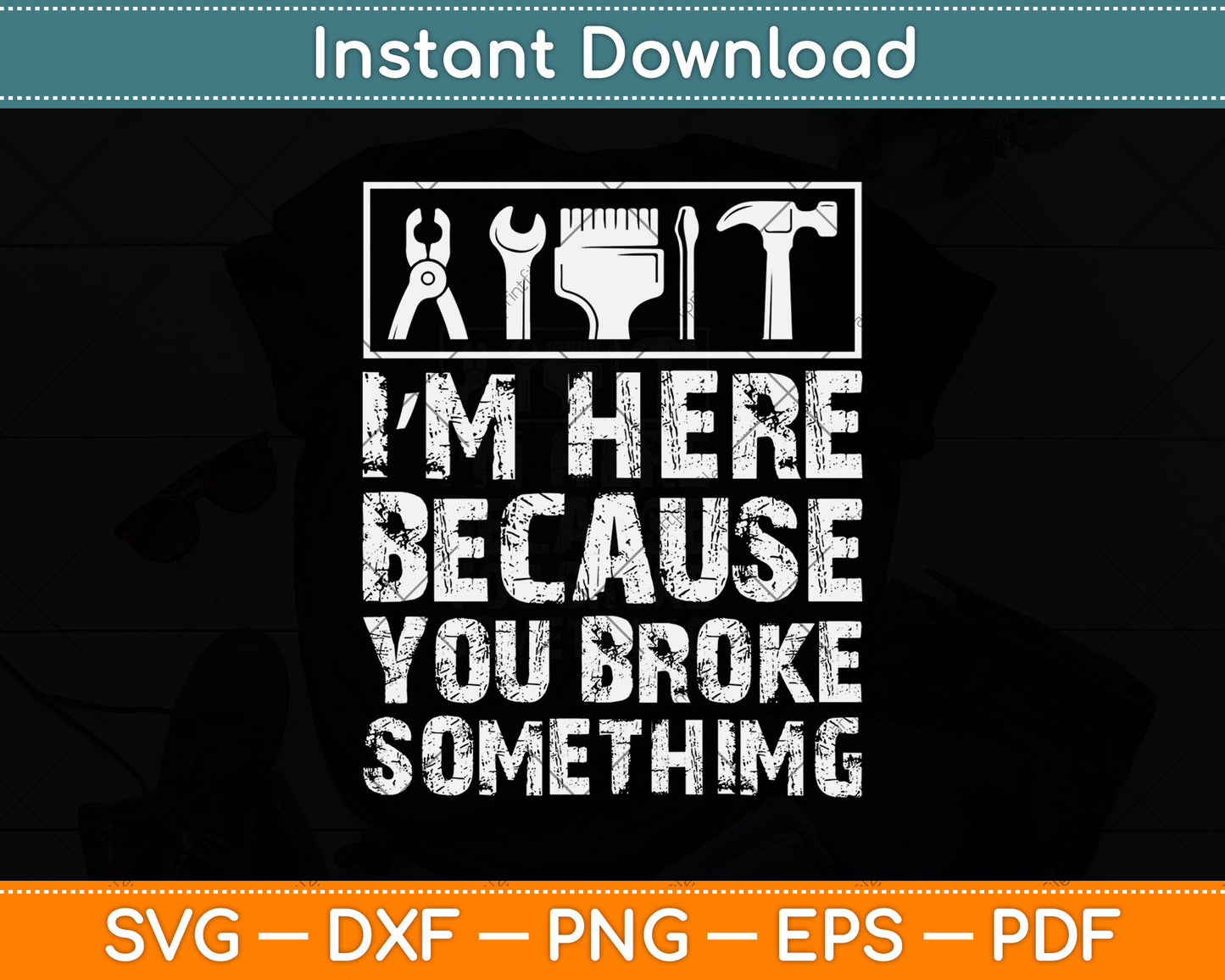 This cut file includes I’m Here Because You Broke Something SVG DXF PNG Design Digital Cutting files.