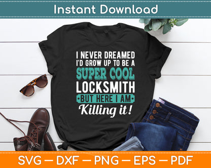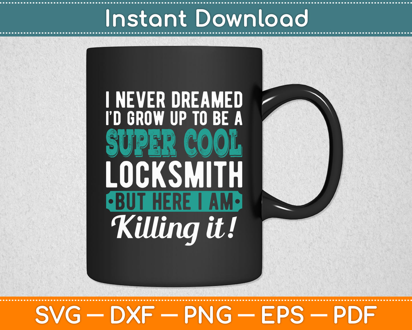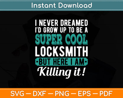 This cut file includes I Never Dreamed I'd Grow Up To Be A Super Cool Locksmith Funny SVG DXF PNG Design Digital Cutting files.