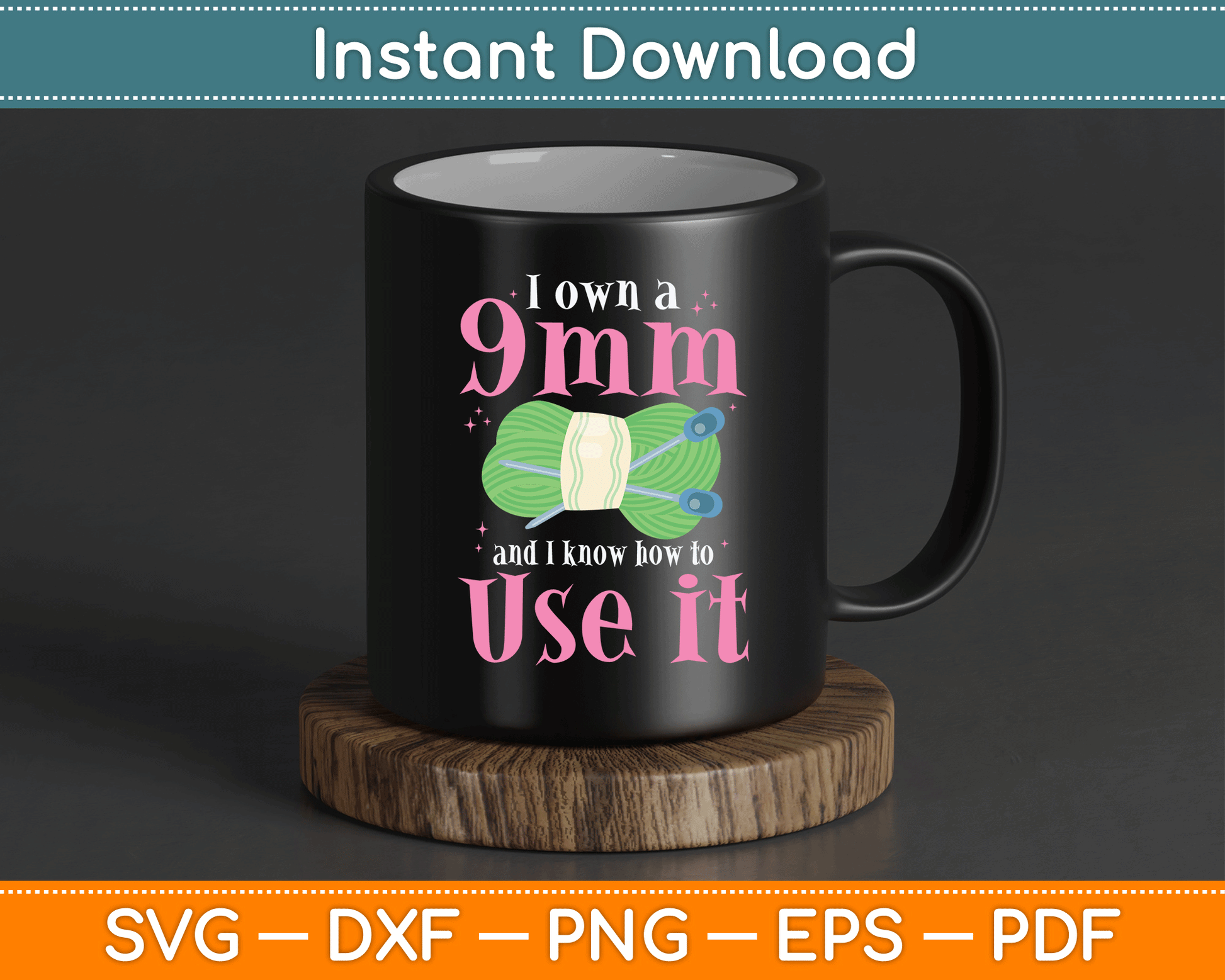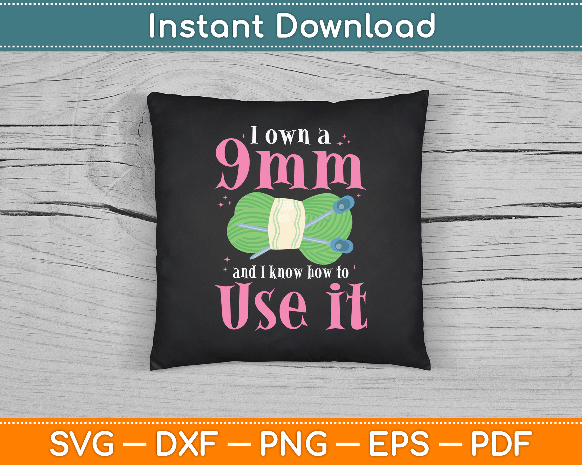 This cut file includes I Own A 9mm And Know How To Use If Funny Crocheting SVG DXF PNG Design Digital Cutting files.