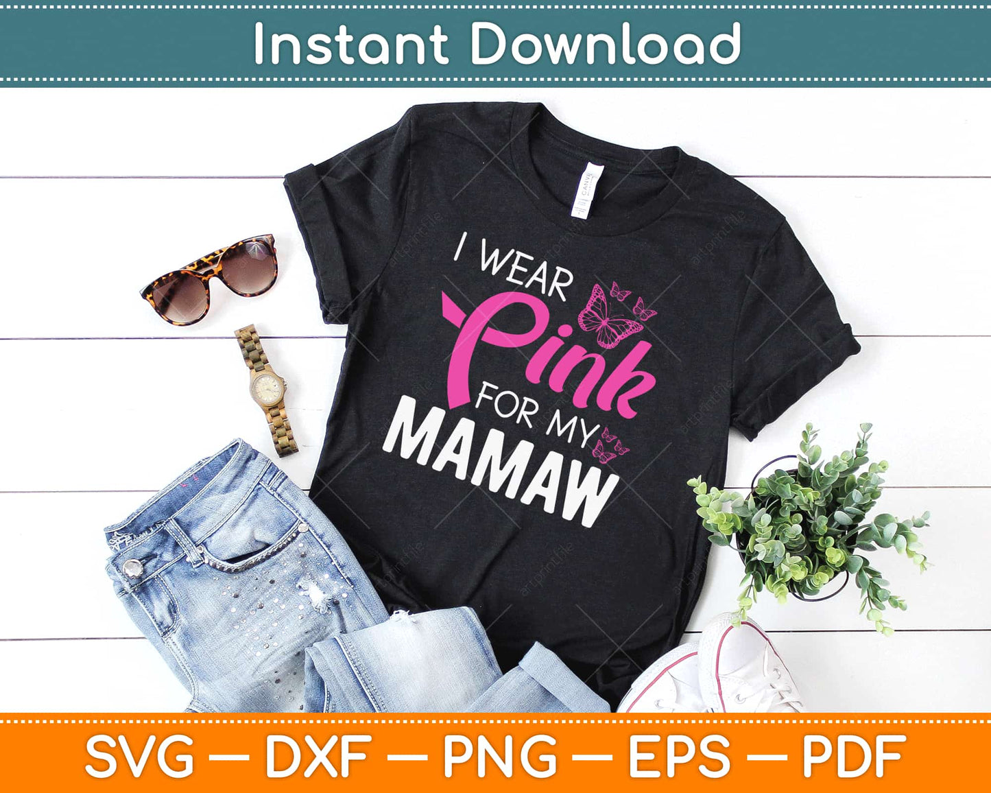 I Wear Pink For My Mamaw Breast Cancer Awareness Svg Design Cricut Cutting Files