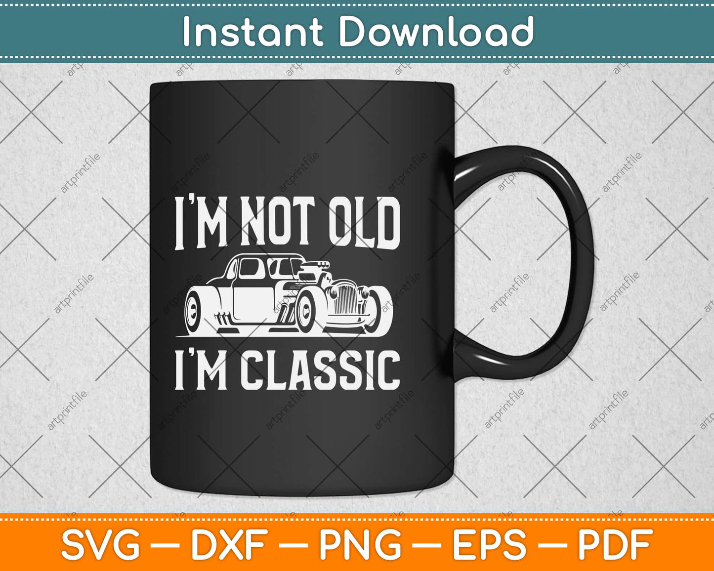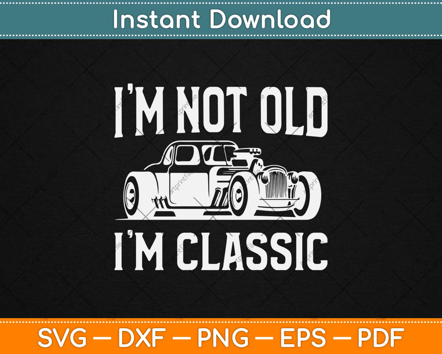 This cut file includes I'm Not Old I'm Classic Vintage Hot Rod Dad Grandpa Fathers Day SVG DXF PNG Design digital Cutting files.