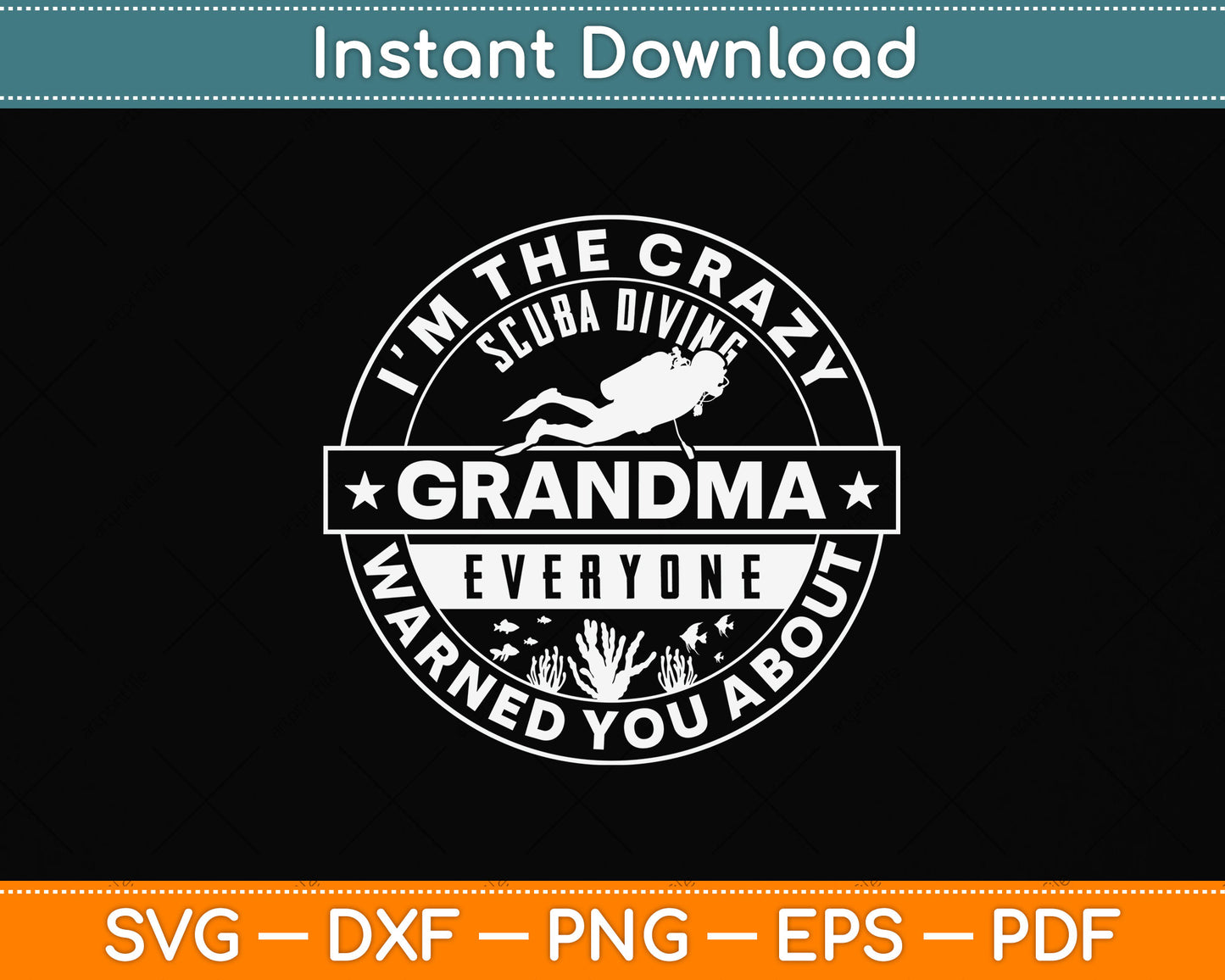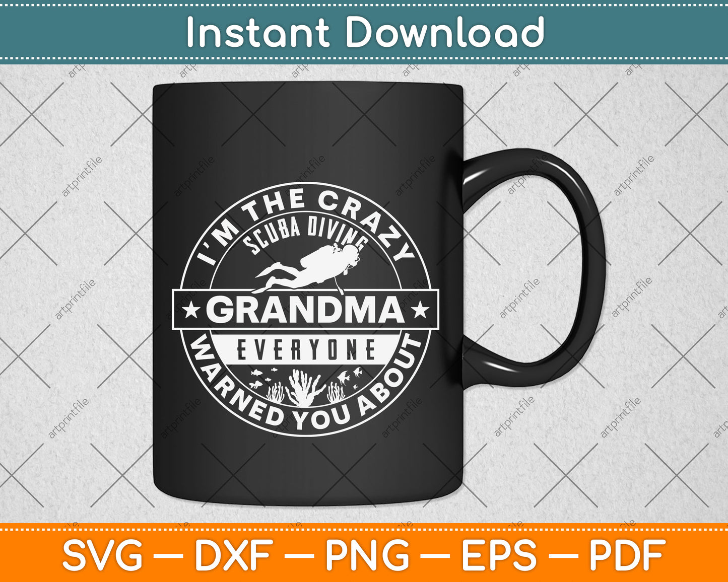This cut file includes I'm The Crazy Scuba Diving Grandma Everyone Warned You About SVG DXF PNG Design Digital Cutting files.
