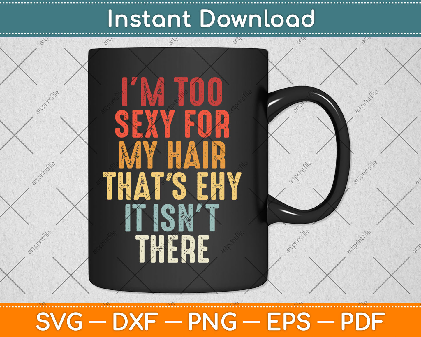 This cut file includes I'm Too Sexy For My Hair That's Why It Isn't There Bald Vintage SVG DXF PNG Design Digital Cutting files.