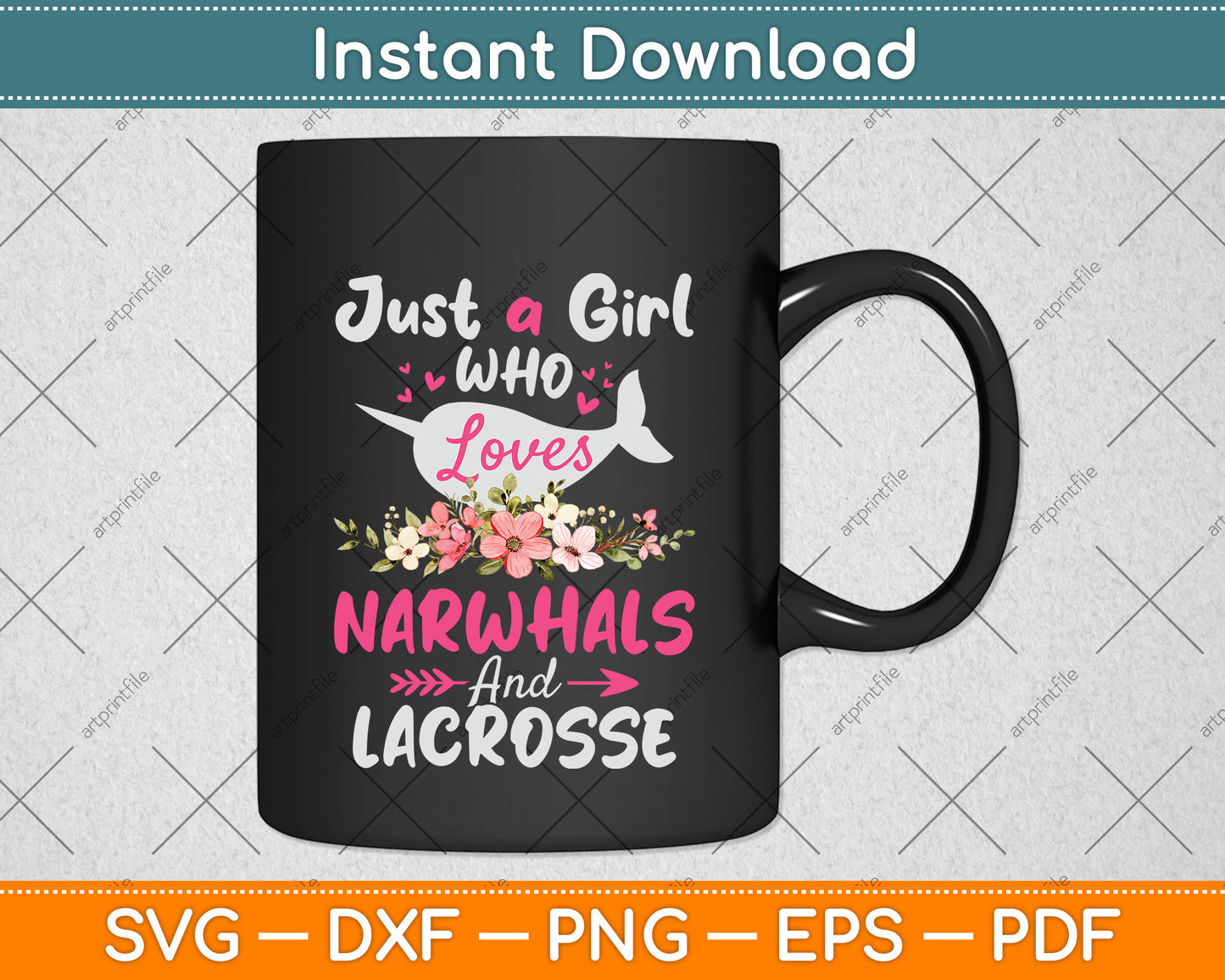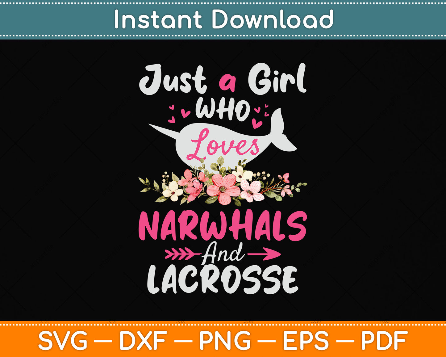 This cut file includes Just A Girl Who Loves Narwhals And Lacrosse SVG DXF PNG Design Digital Cutting files.