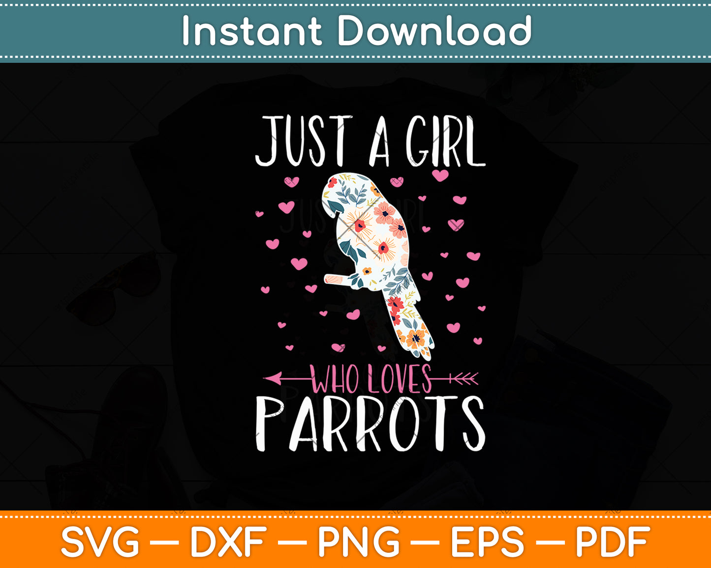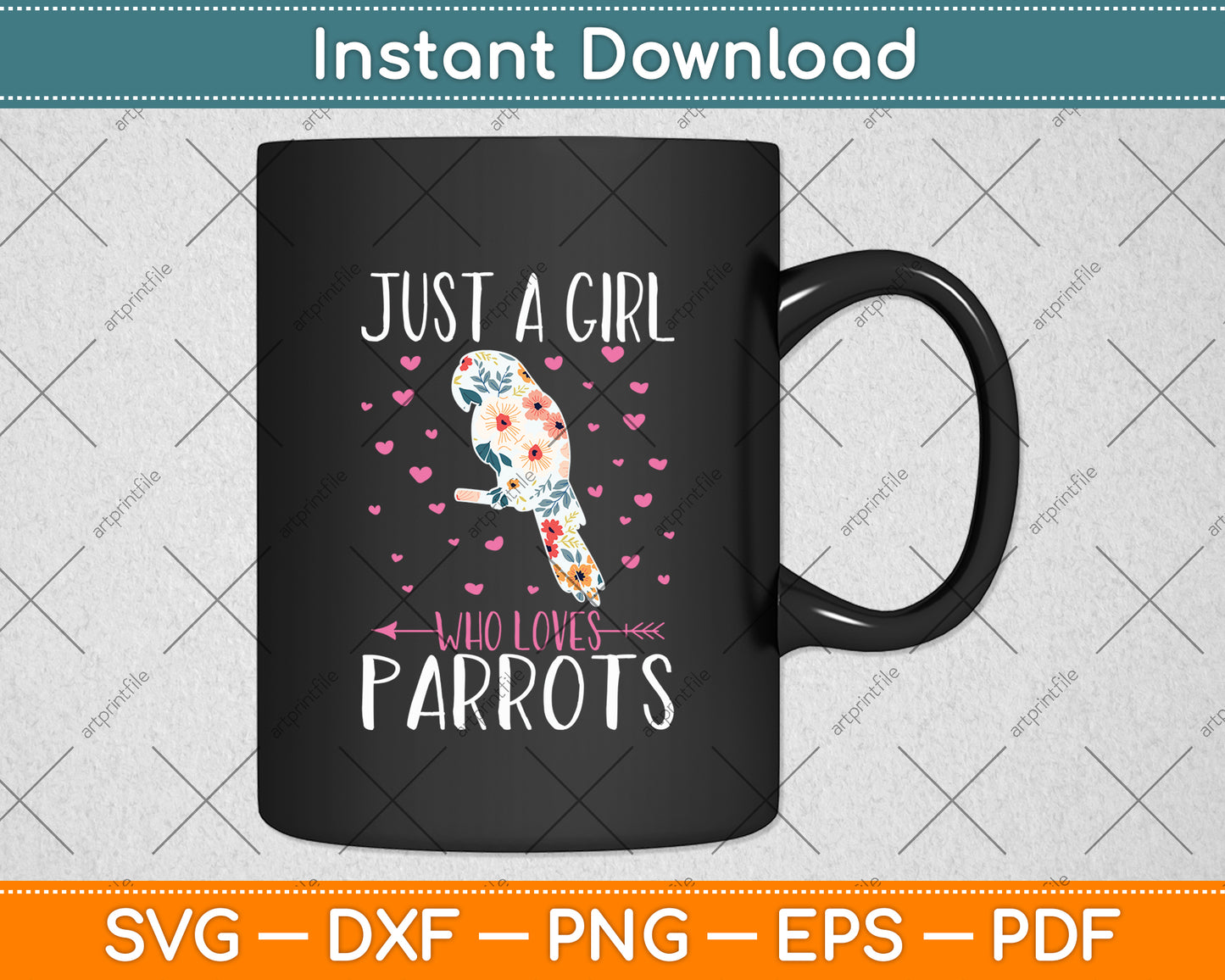 This cut file includes Just A Girl Who Loves Parrots Cute Parrot Lover Girls SVG DXF PNG Design Digital Cutting files.