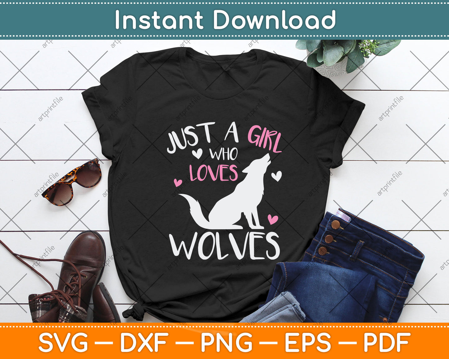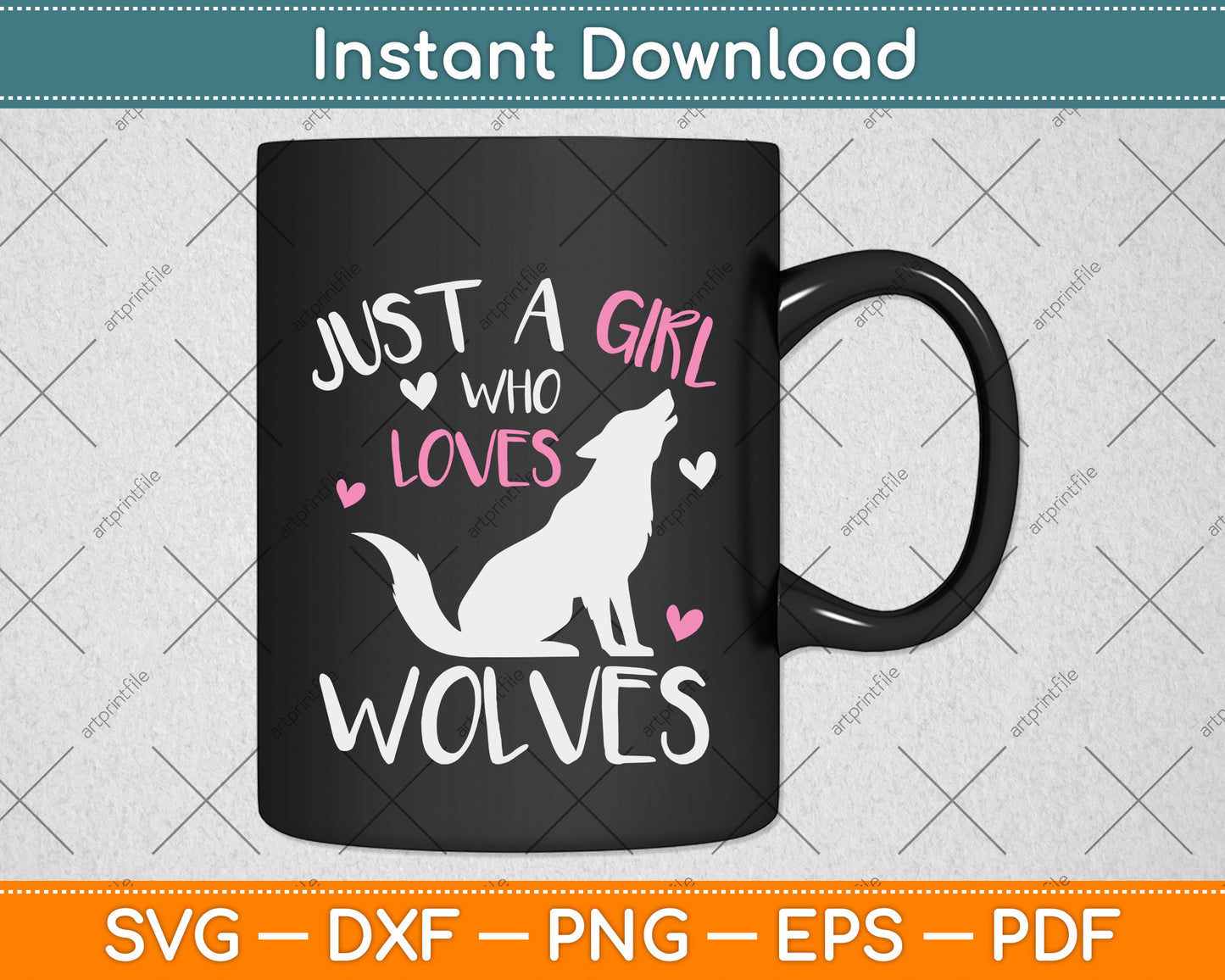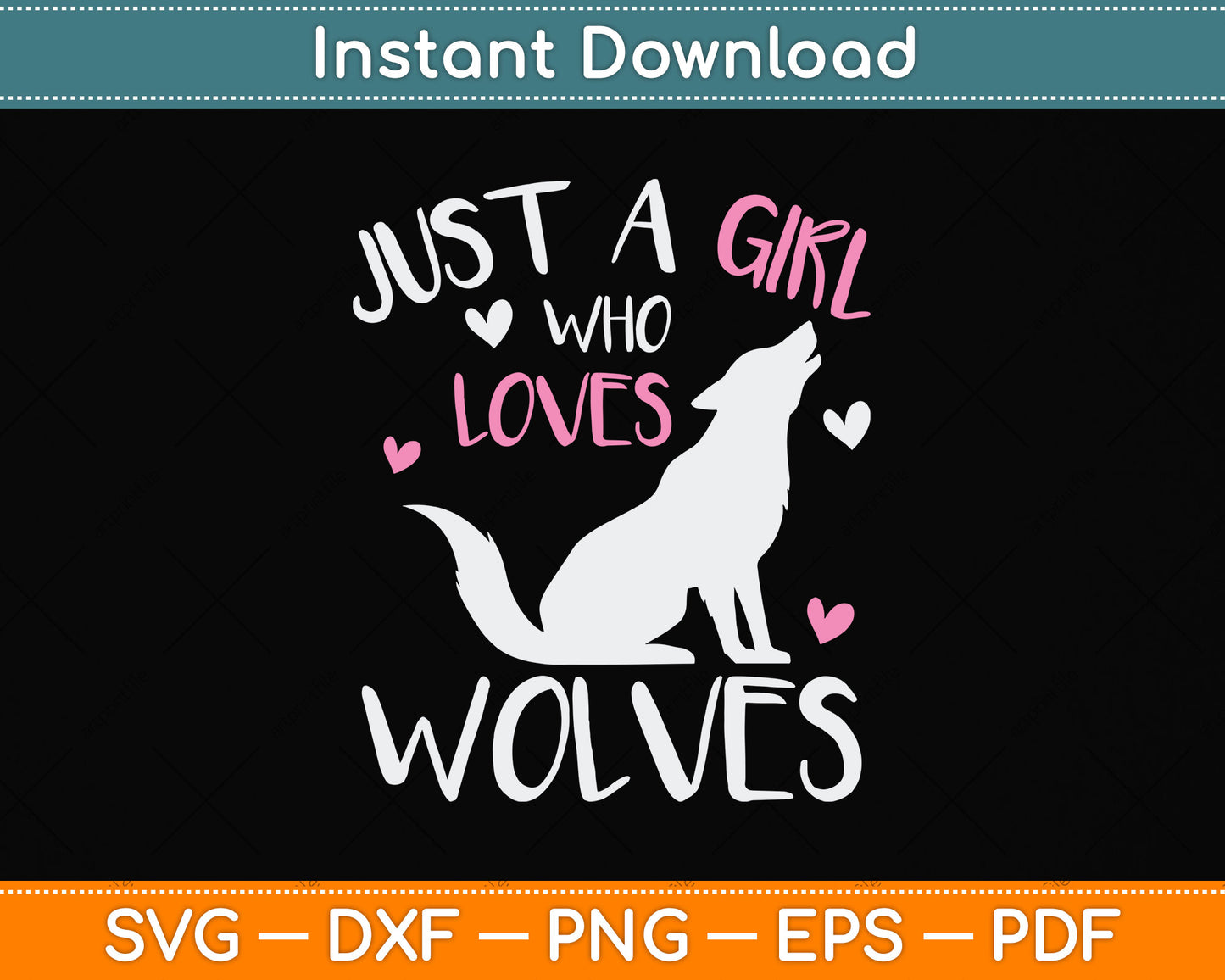 This cut file includes Just A Girl Who Loves Wolves SVG DXF PNG Design Digital Cutting files.