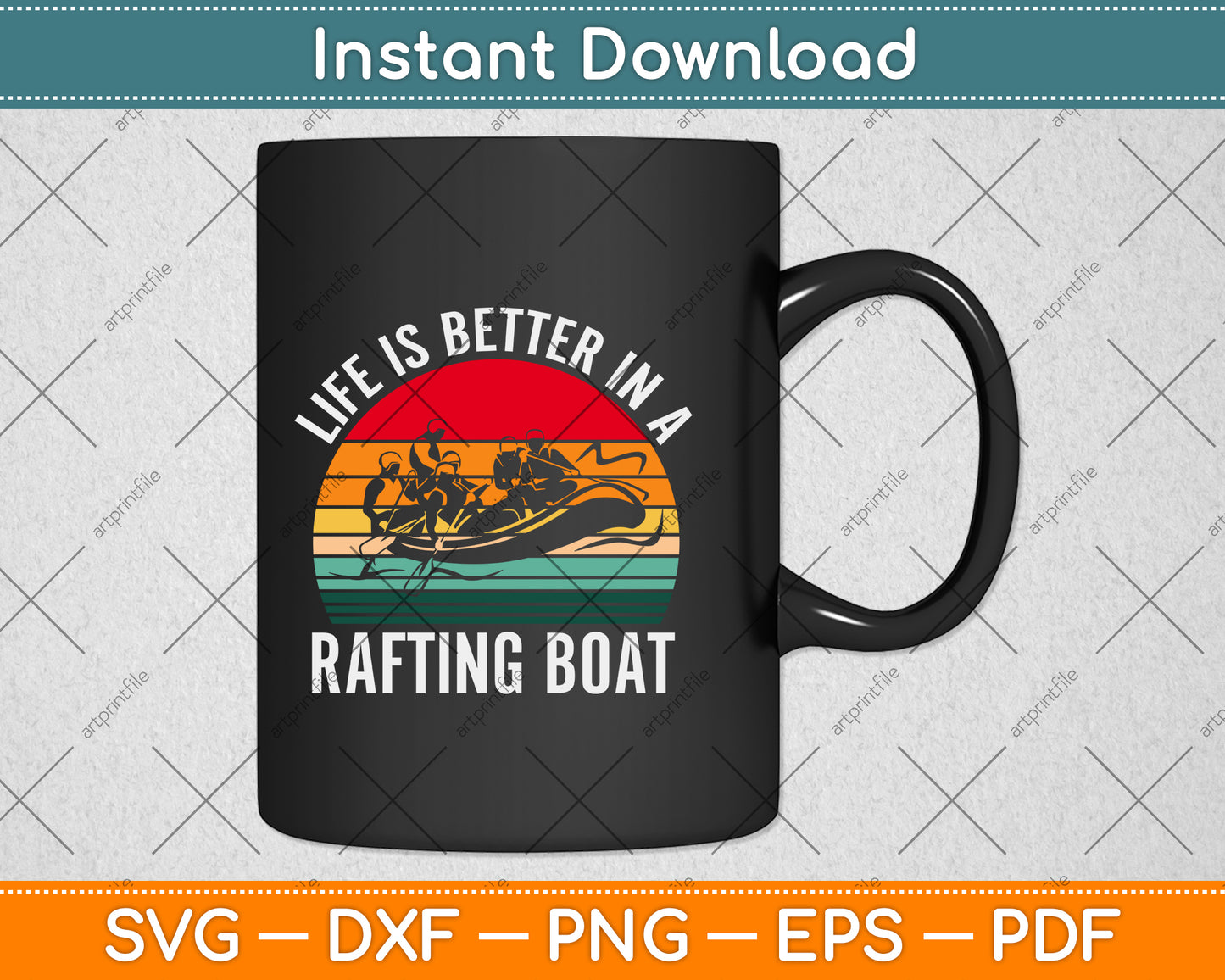 This cut file includes Life Is Better In A Rafting Boat Whitewater Rafting SVG DXF PNG Design Digital Cutting files.