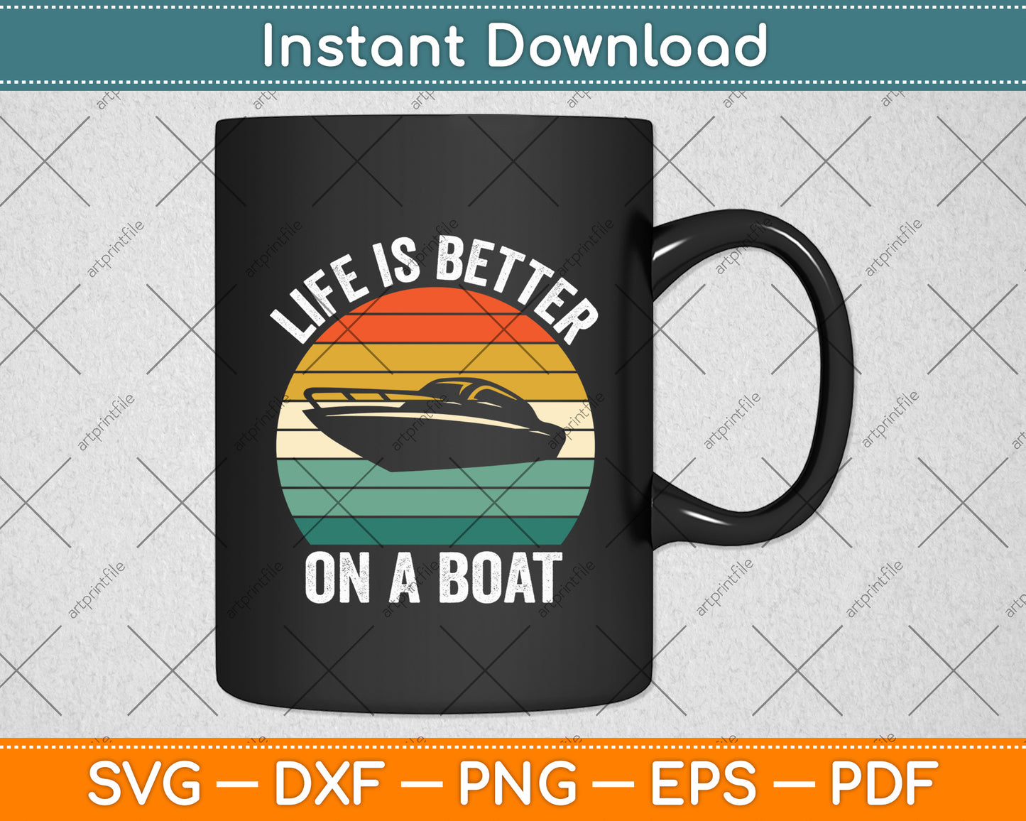 This cut file includes Life Is Better On A Boat Captain Boating Pontoon Vintage Funny SVG DXF PNG Design Digital Cutting files.
