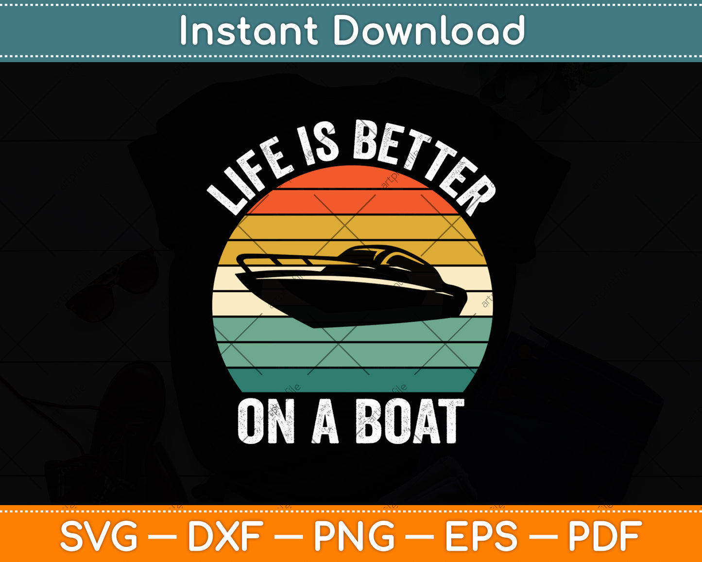 Life Is Better On A Boat Captain Boating Pontoon Vintage Funny Svg Digital Cutting File